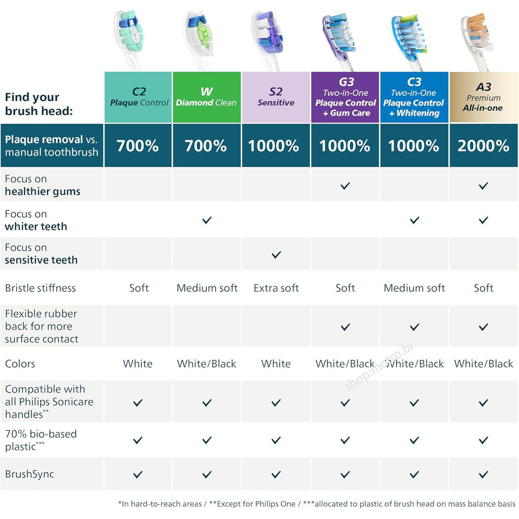 Cabeças de Recarga Philips C3 2 em 1 - Kit com 4 Escovas,Fornecimento para 1 Ano,Cor Preta Modelo HX6730/3216/3226/9362