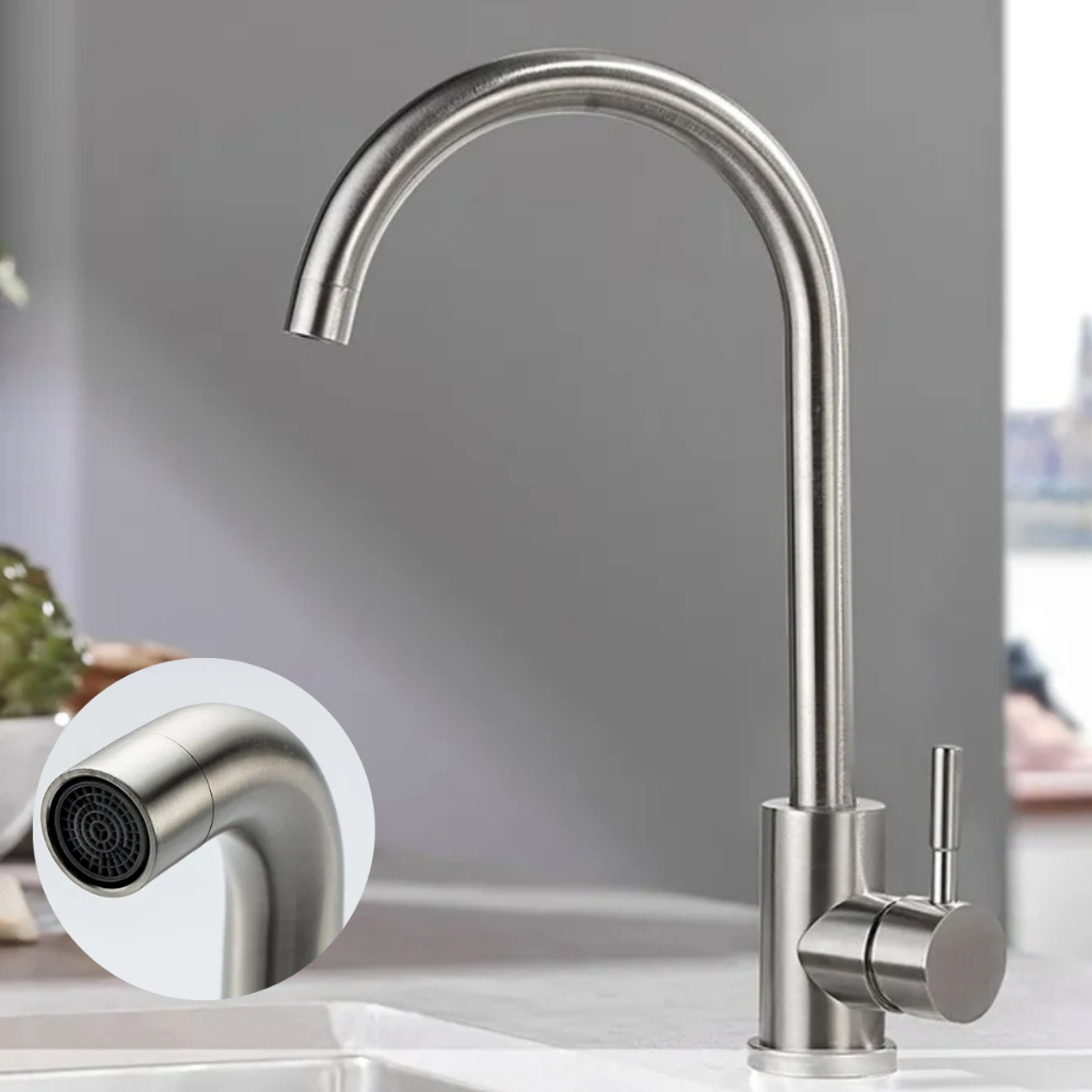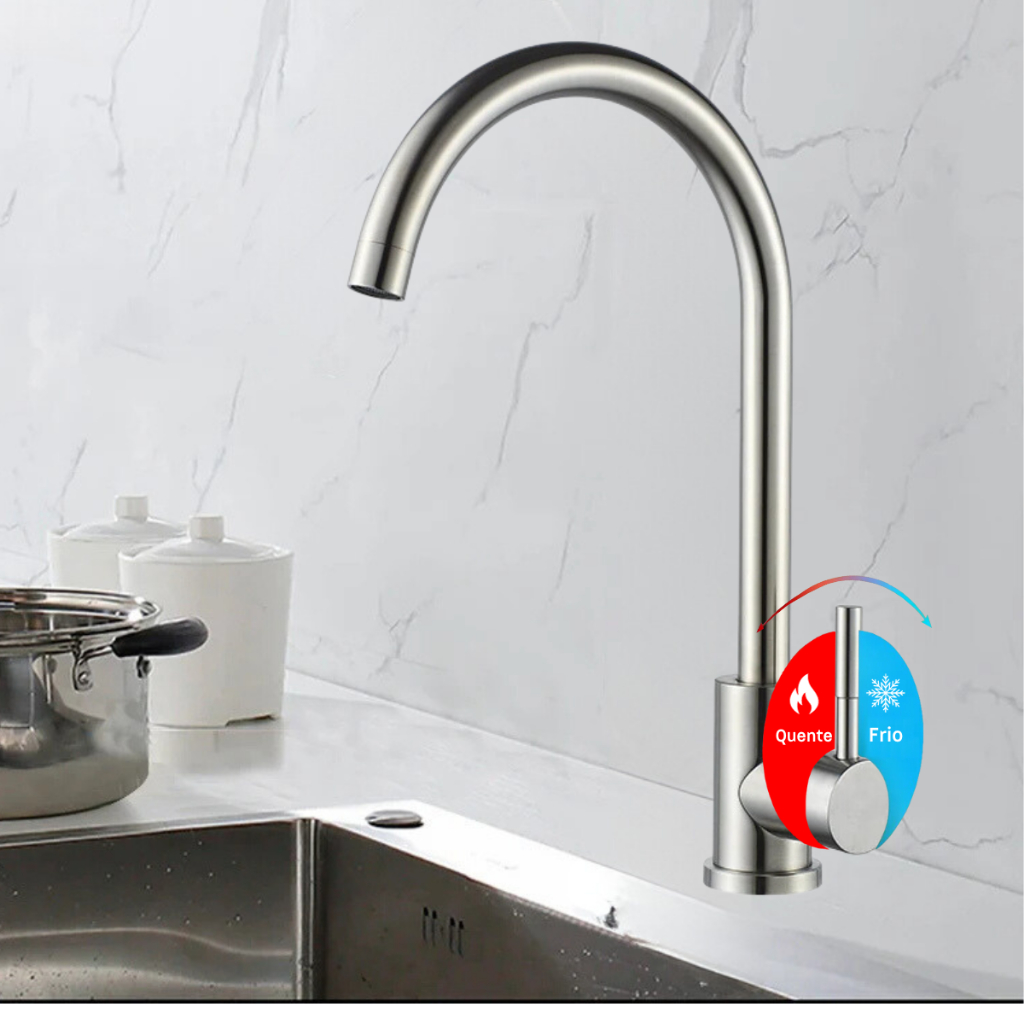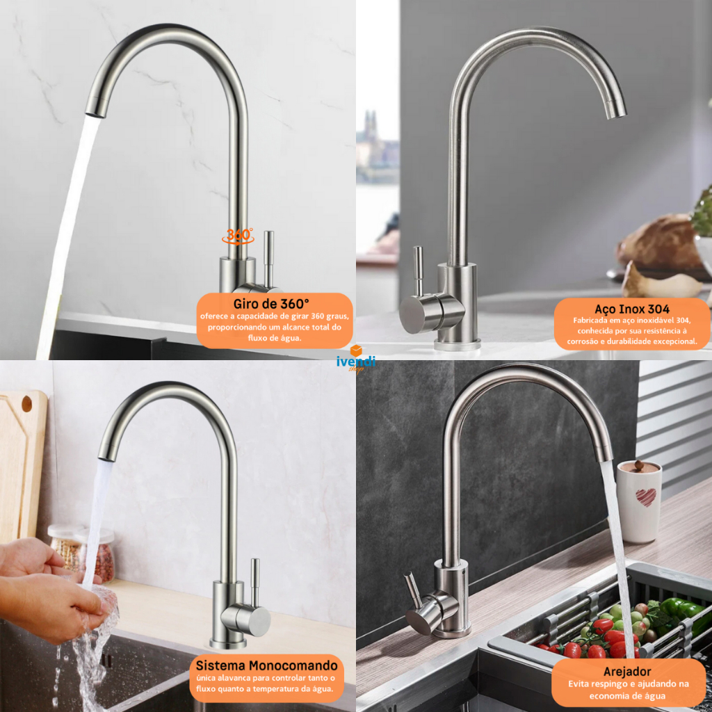 Torneira Monocomando Inox 304 Escovada Cozinha Gourmet Moderna Super Luxo Chique Bica Móvel Giro 360