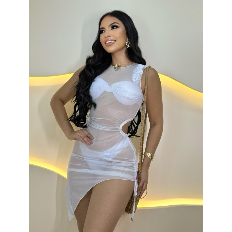 Saída de Praia Vestido Transparente Marrom em Tule com Elastano – Ref. 2383