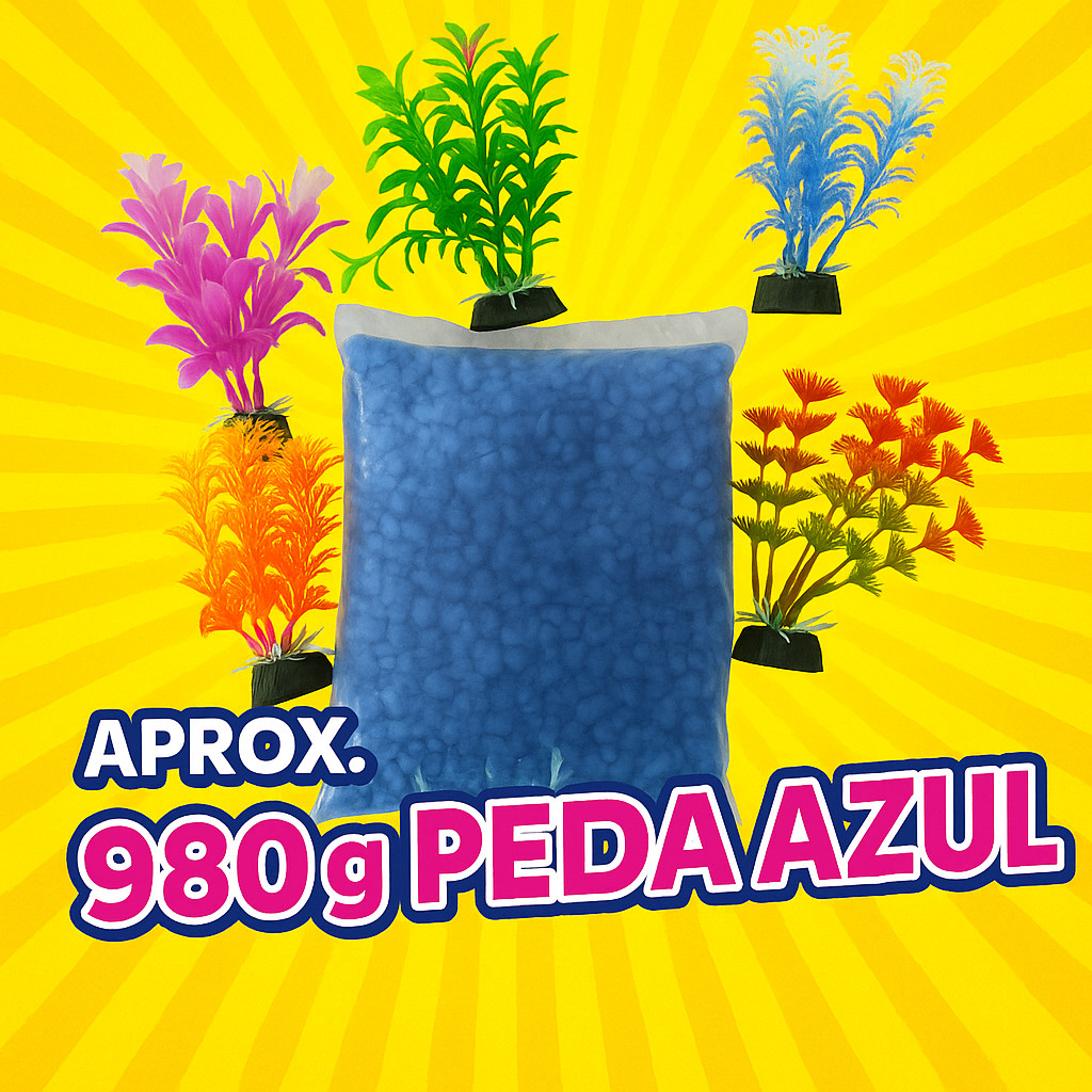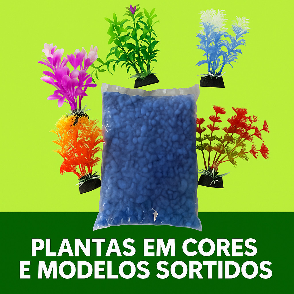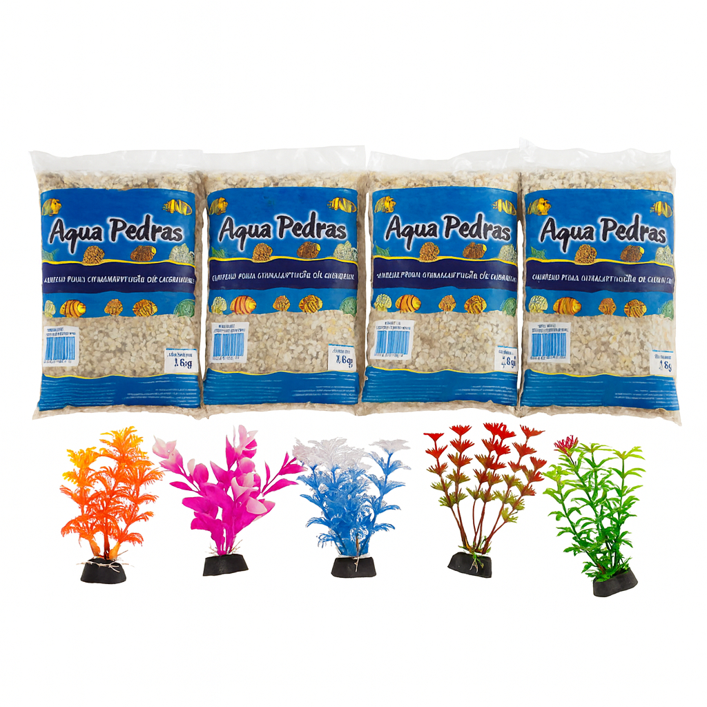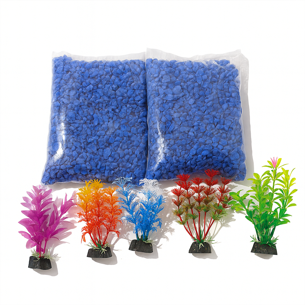 Kit Decoração Aquário 980g pedra azul+ 5 Plantas Artificiais 10cm ideal para ornamentação decoração