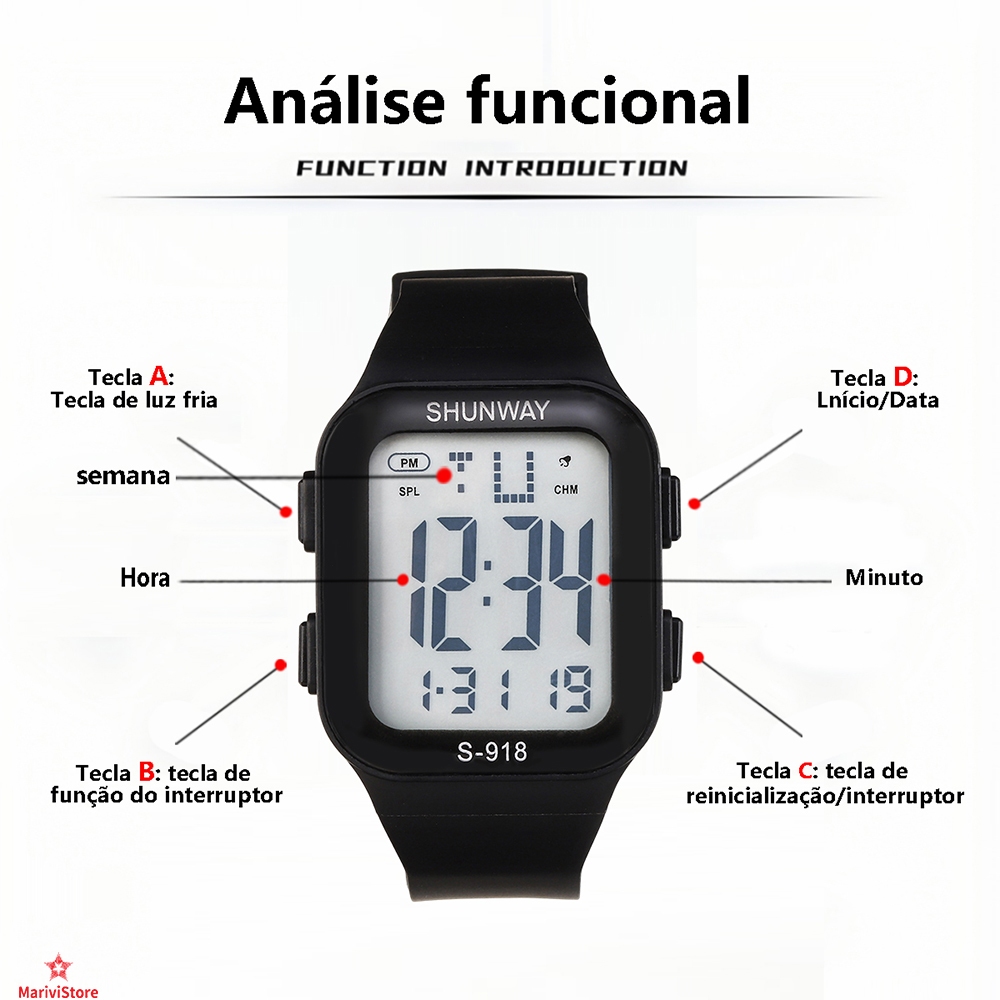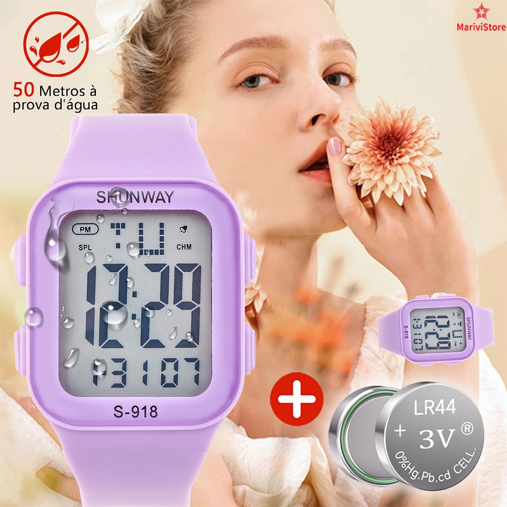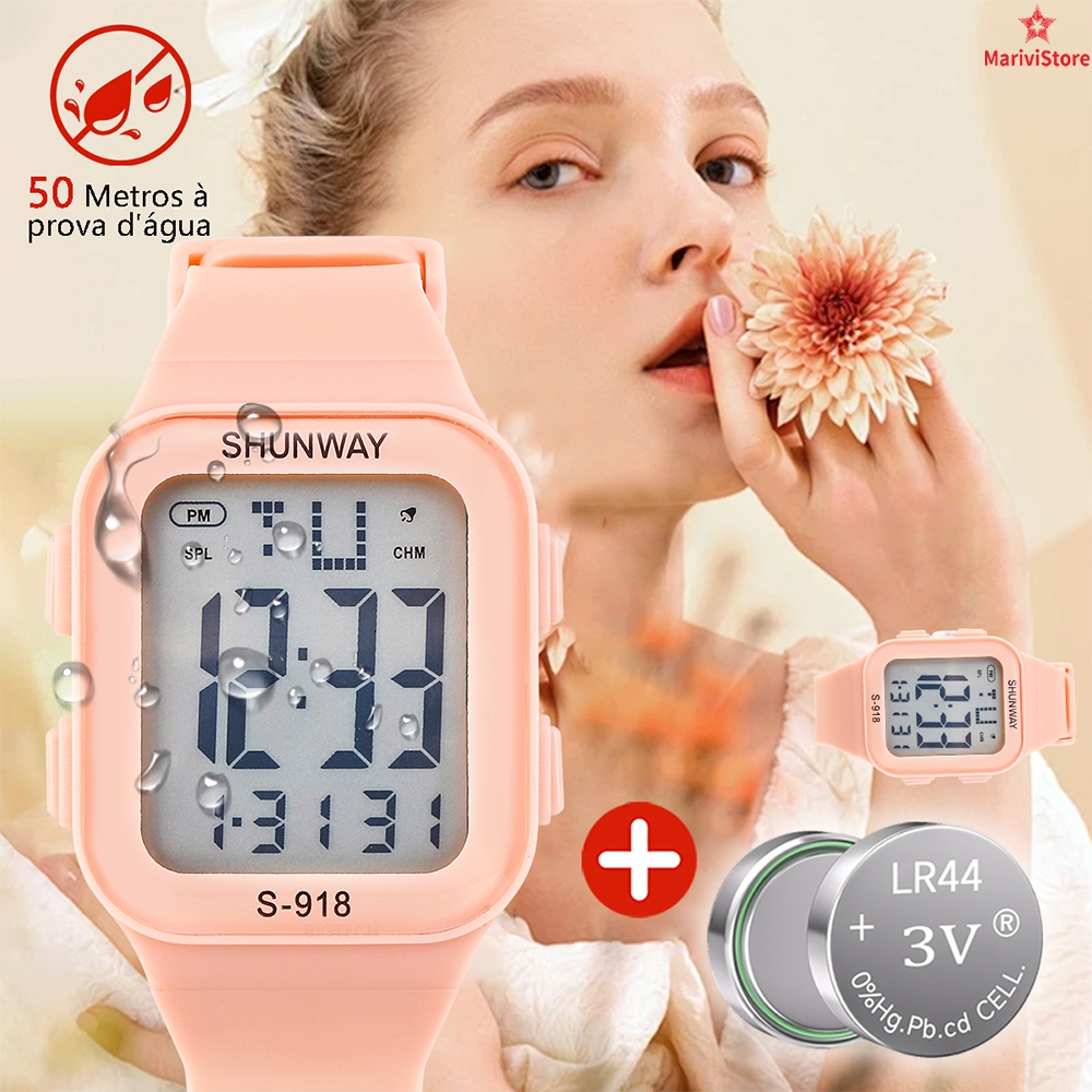 Relógio Feminino Esportivo Digital Led 50m À Prova D'Água Cronômetro Alarme
