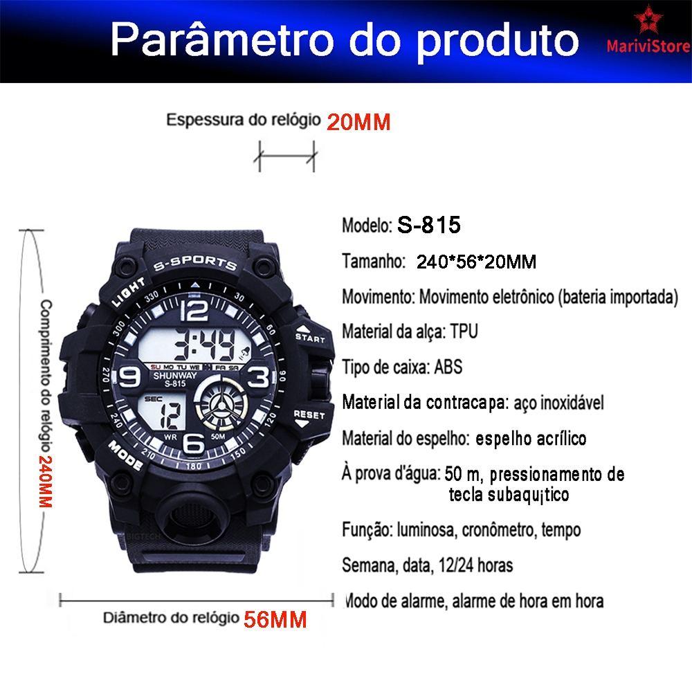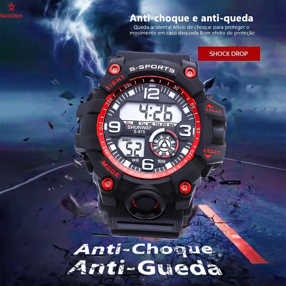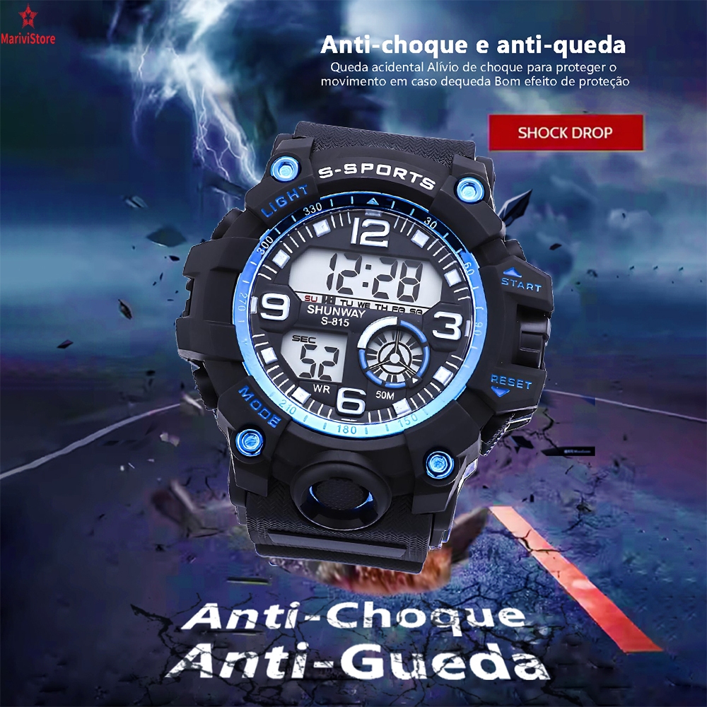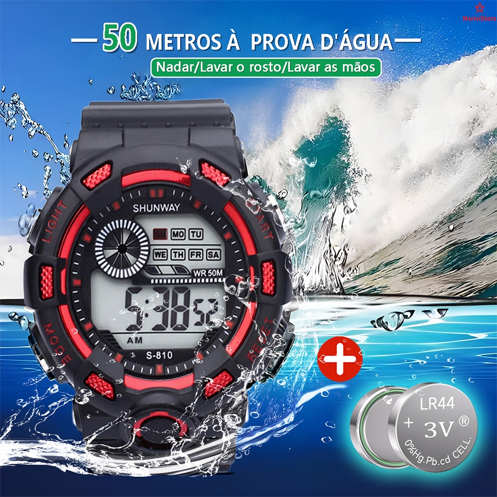 Relógio Masculino Digital Esportivo À Prova D'Água 50m Pulseira De Silicone Cronômetro