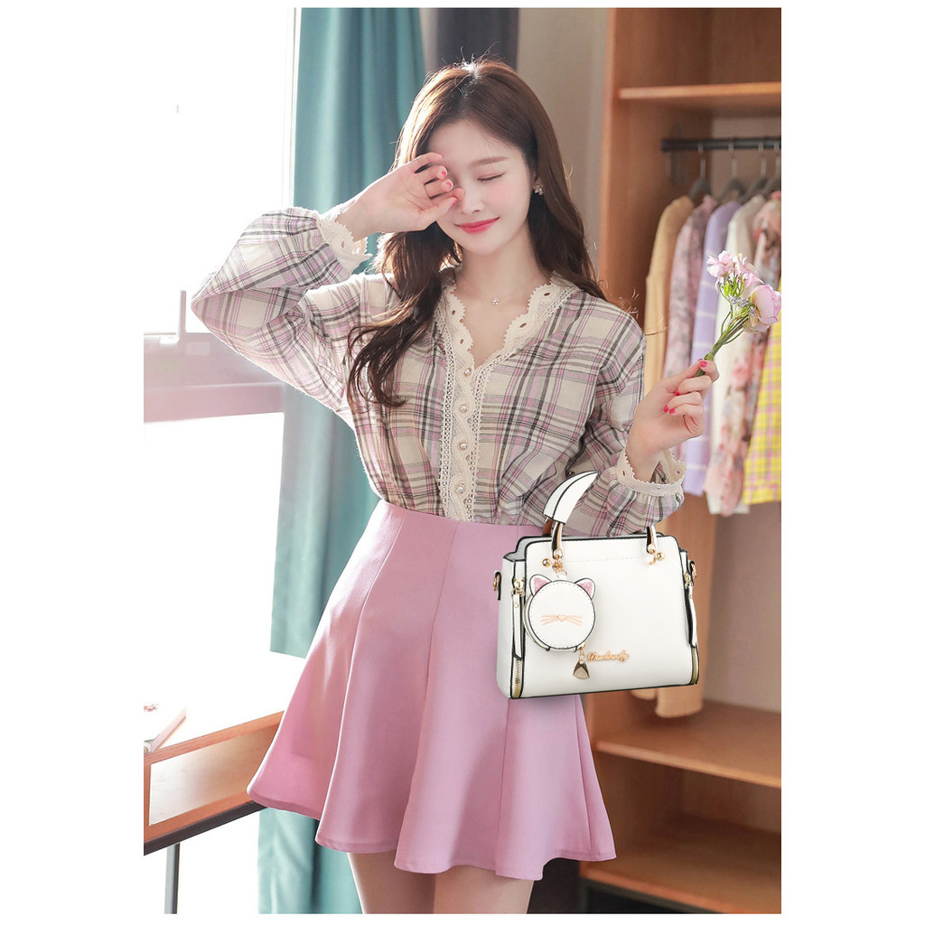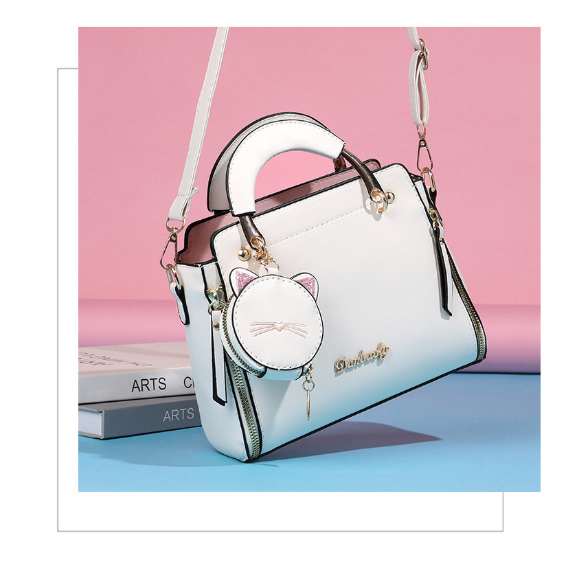 Esta bolsa feminina com padrão de gato pode ser usada como bolsa de ombro, bolsa transversal ou bolsa de mão.