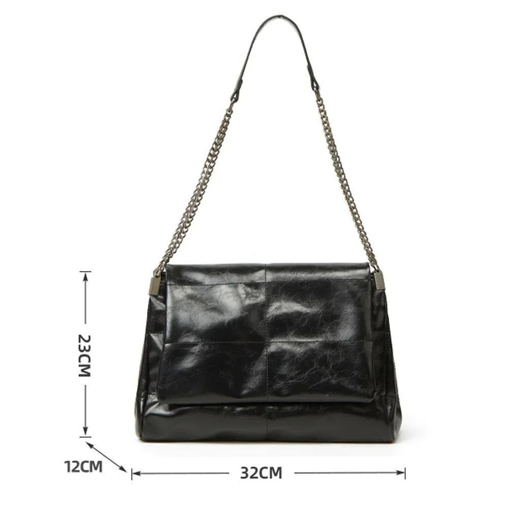 Bolsa de Ombro Feminina CHENXIAOH em PU - Grande Capacidade, Estilo Rock Preto, Bolsa com Aba e Design de Corrente para