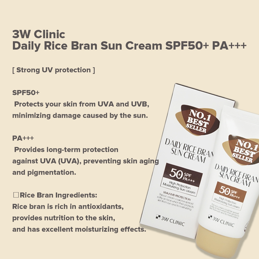 3w Clínica 2025 Novo Projeto Cica Creme Solar/Diário De Farelo De Arroz 70ml Fps50 + PA + + TOPKOREA Envio Da Coreia