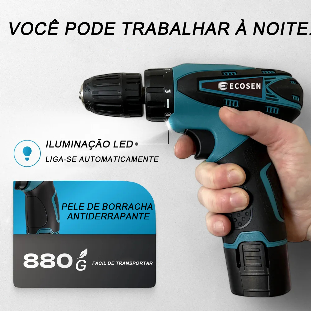 Parafusadeira Furadeira 12V 2 Baterias 110V/220V C/ Acessórios