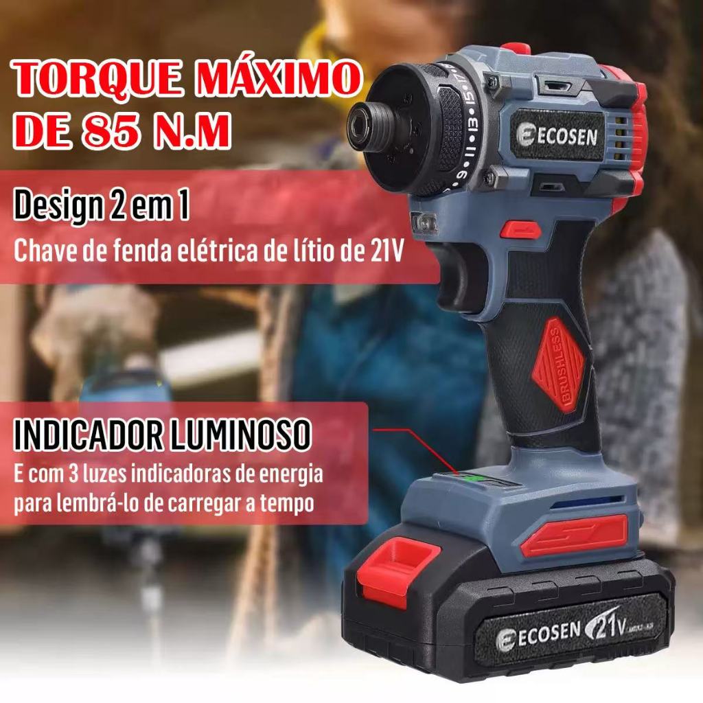 21V Parafusadeira 2 Baterias Furadeira Ferramentas sem escova