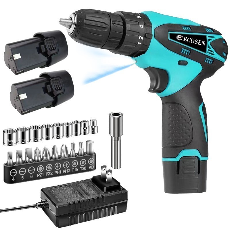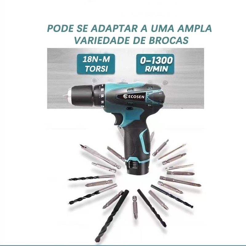 Furadeira Parafusadeira de impacto 3/8" a bateria 12V 2 Baterias e acessórios Mondial (110V/220V) + acessórios para