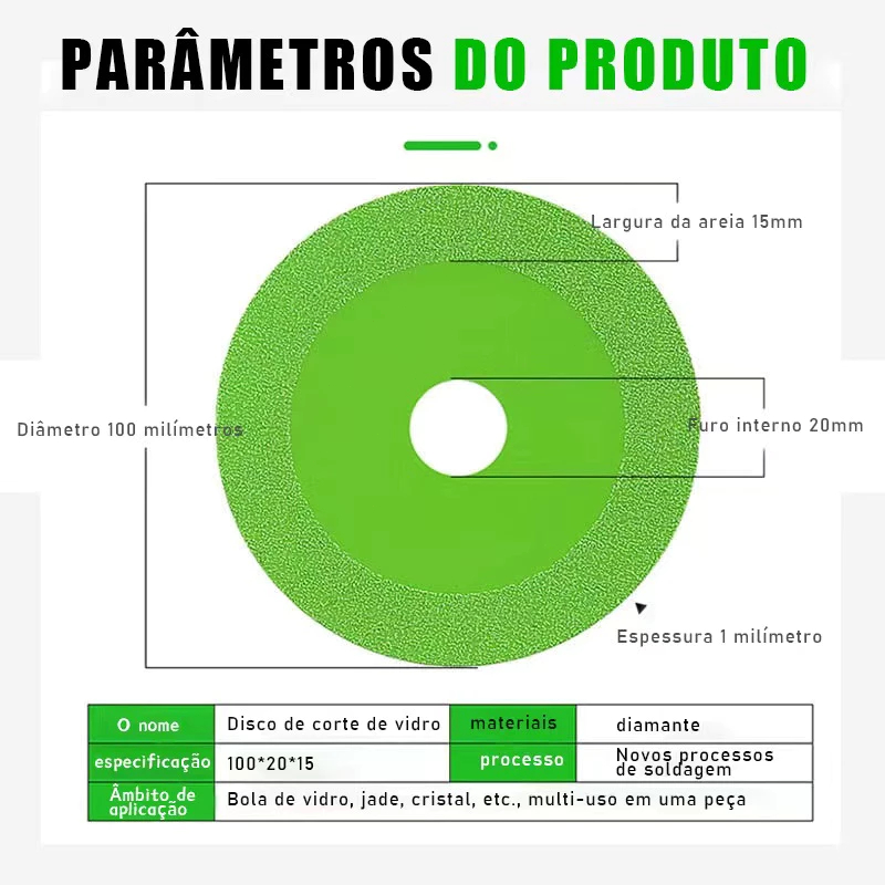 Disco para cortar vidro TNT Brutus de 100mm e Furo de 20mm para esmerilhadeiras e serras mármores de qualquer marca