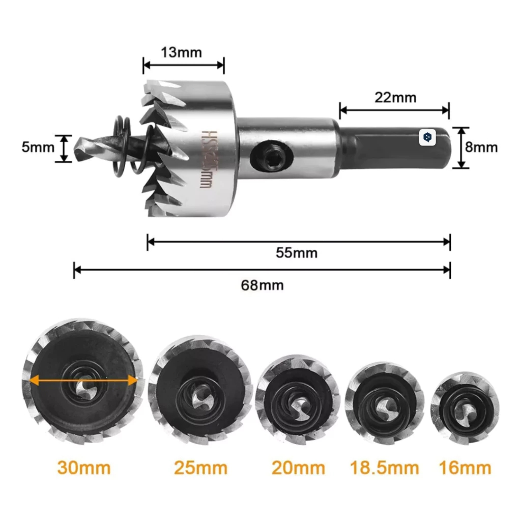 Kit 5 Brocas Serra Copo Furar Ferro Aço Metal 16/18,5/20/25/30mm Mm