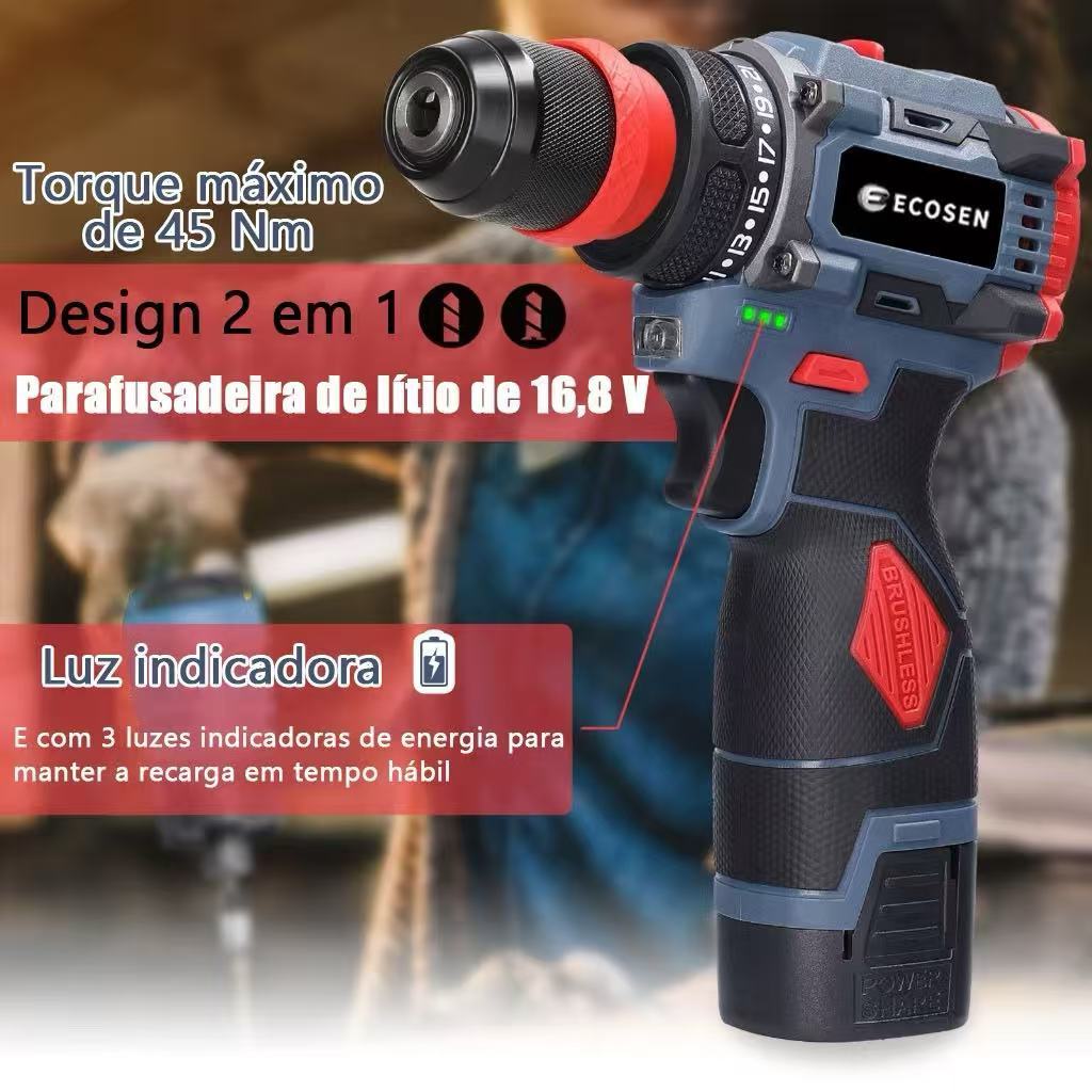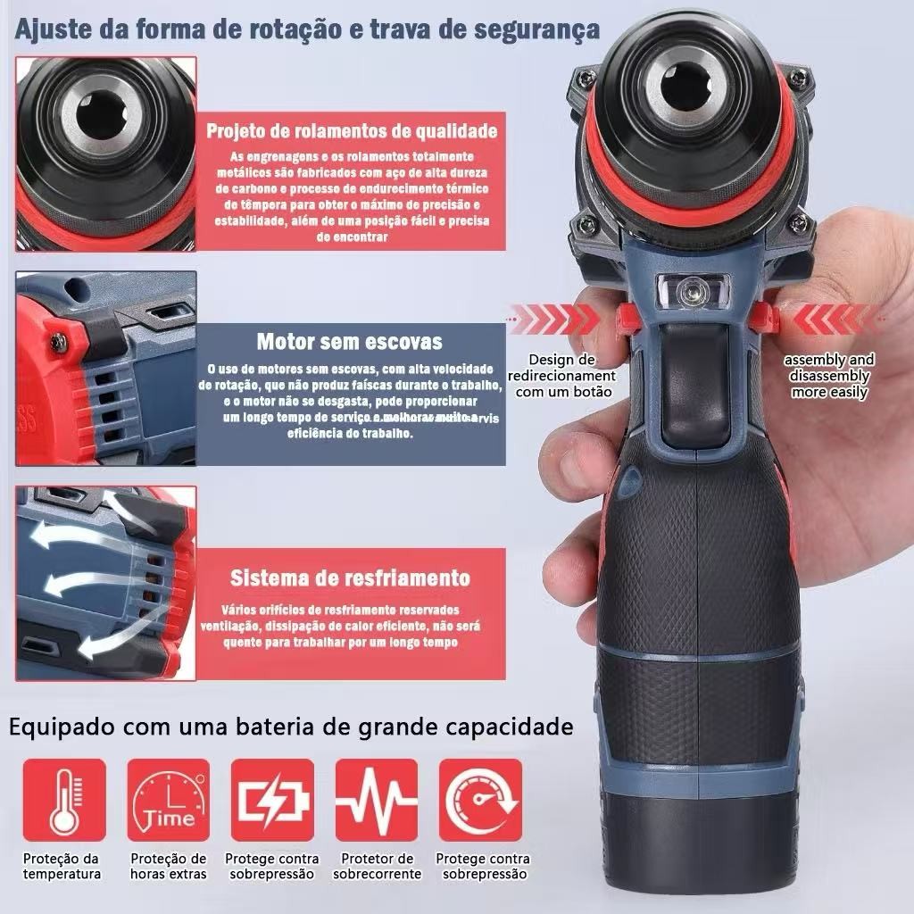 Parafuso broca 2pcs bateria 21v broca caixa 28pcs cor preto chave de fenda brushless