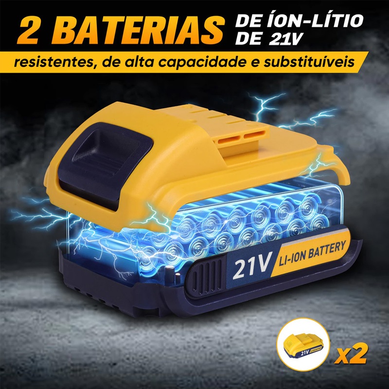 Parafusadeira Furadeira de Impacto Sem Fio 21v Bateria Duas Baterias