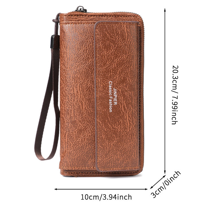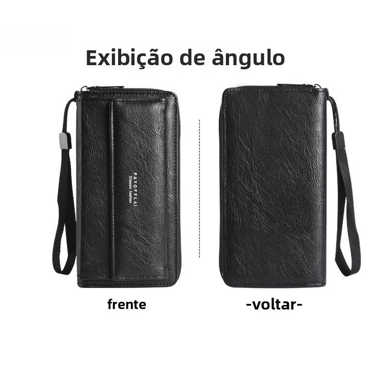 Carteira Longa de PU Masculina CHENXIAOH – Slots para Múltiplos Cartões, Clutch de Grande Capacidade, Carteira para Tele