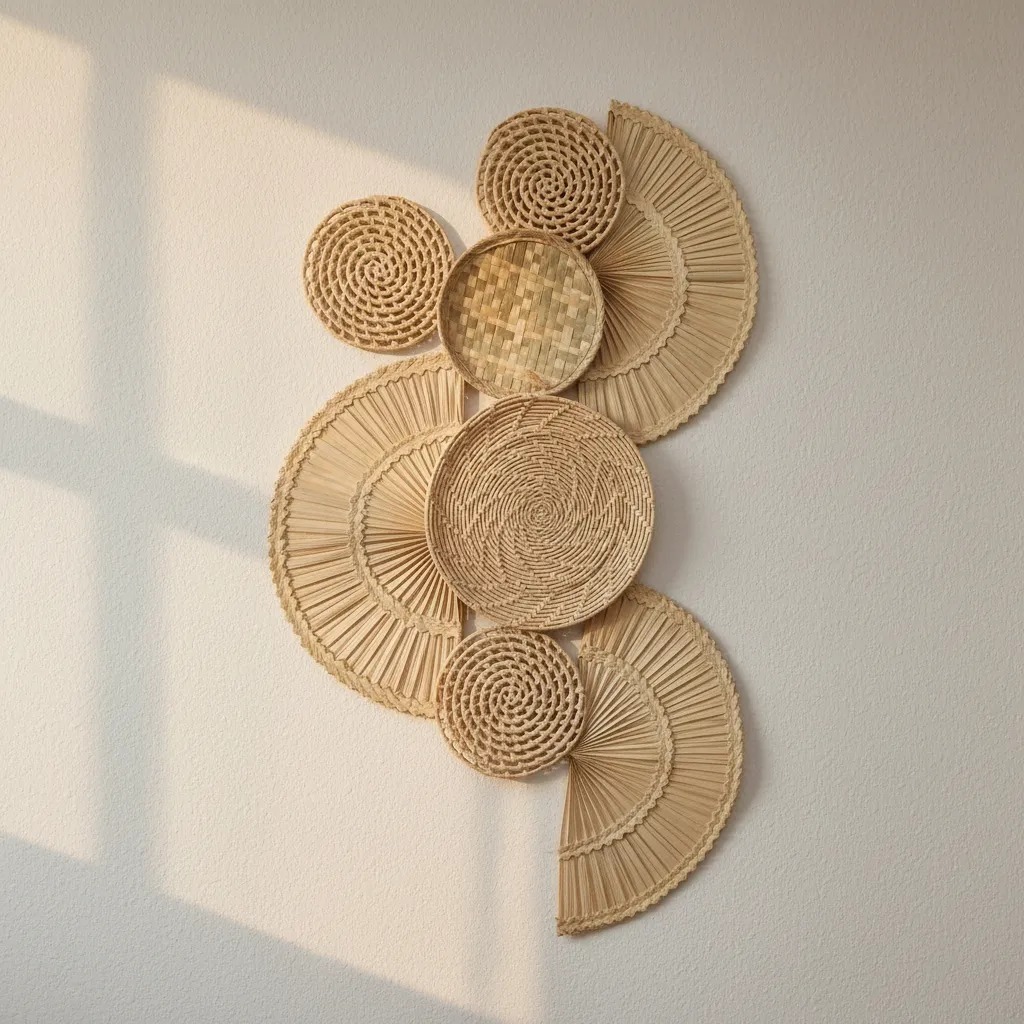 Decoração Parede Boho Composição Peneiras, Leques E Sousplat