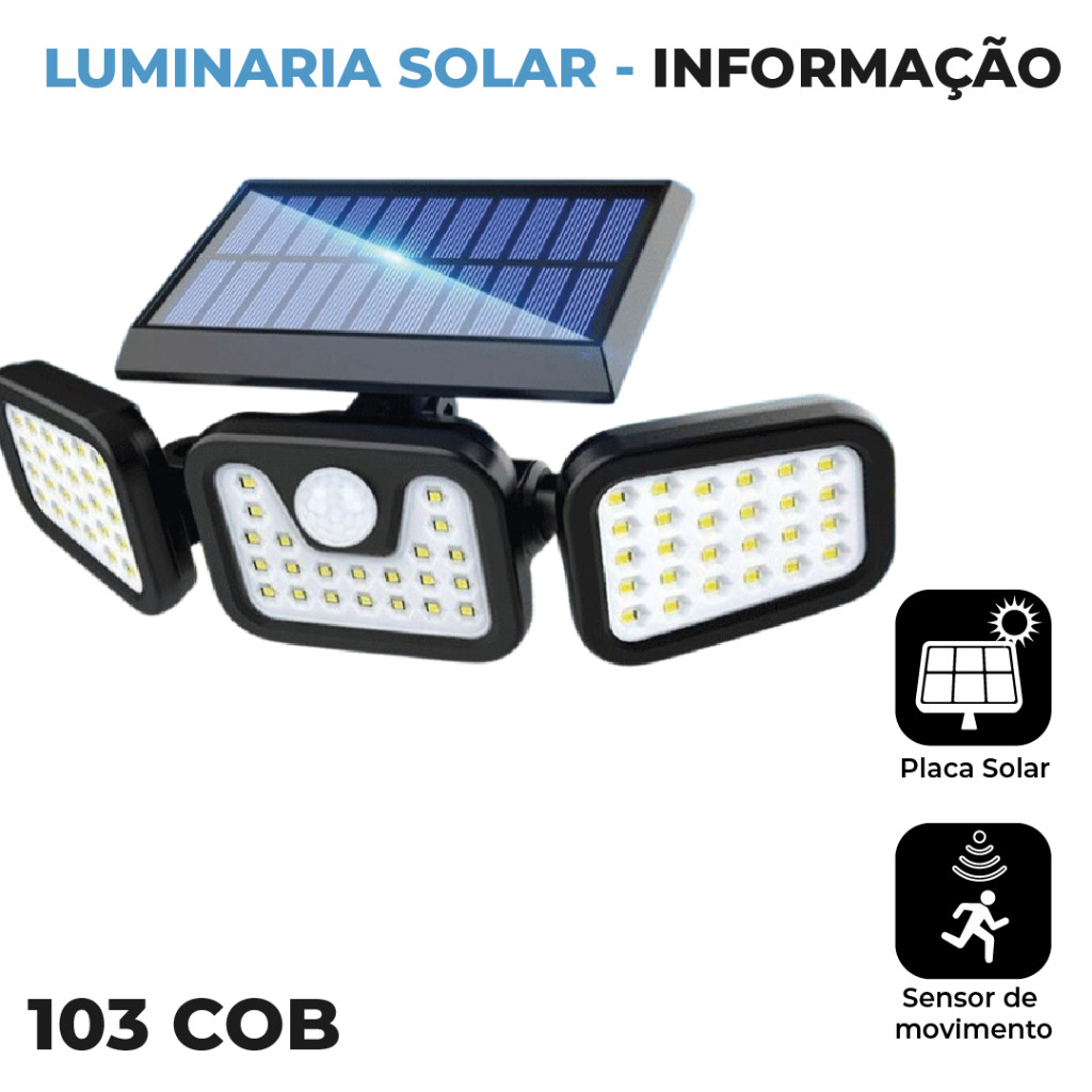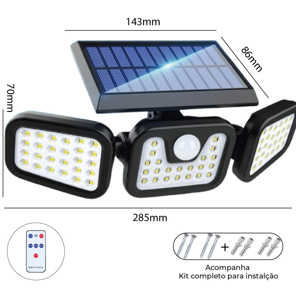 Luminária Solar Led 10W com Sensor de Movimento Luz Fria Ajustável para ambientes externos