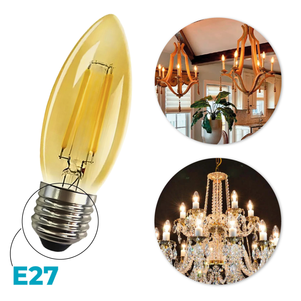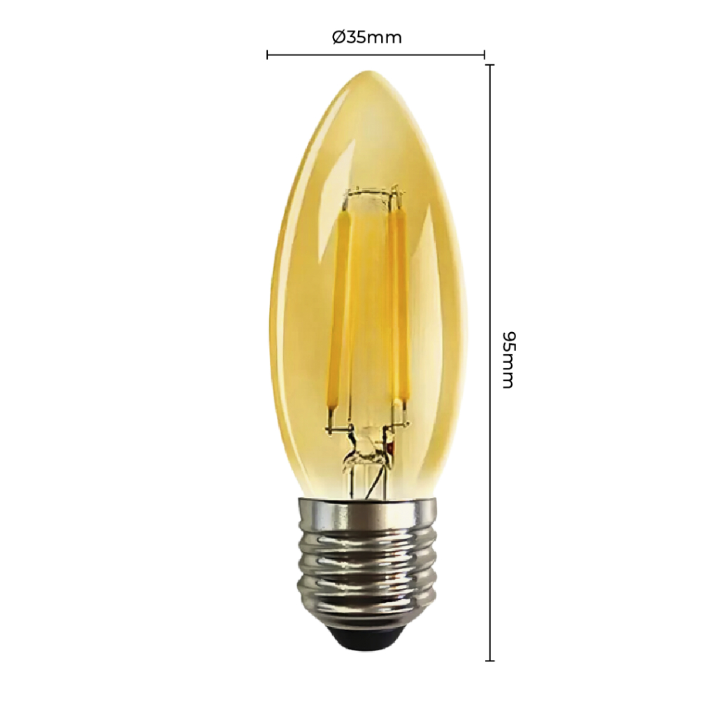 Lâmpada Filamento Vela Led E27 Luz Quente C35 4W Amba Retro Vintage 2200K 110V-220V Bivolt