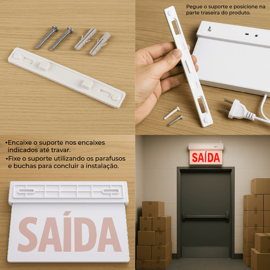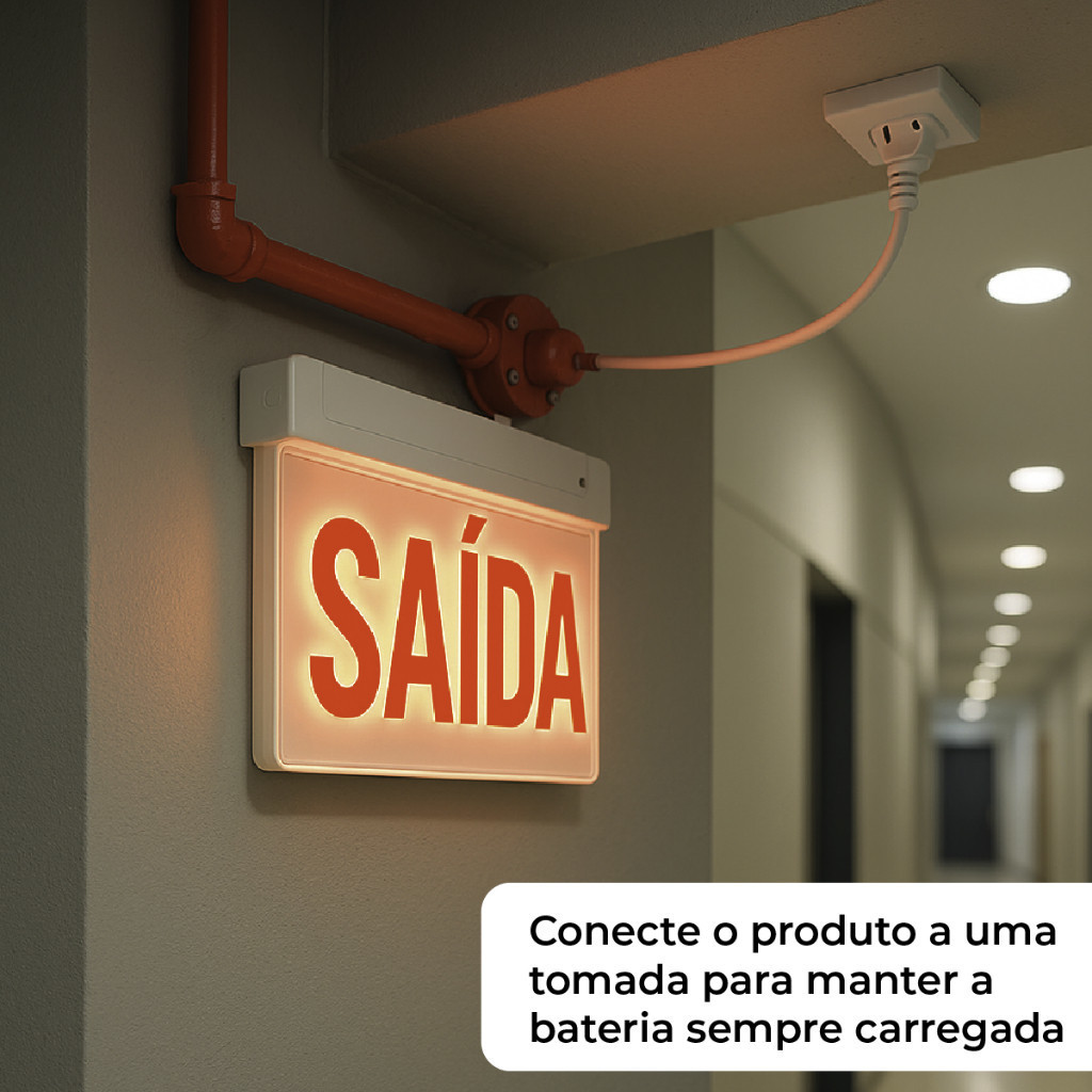 Placa Sinalizadora Dupla Saída Led 7W Vermelho ou Verde com Autonomia 5h 110V/220V