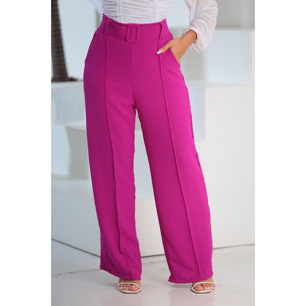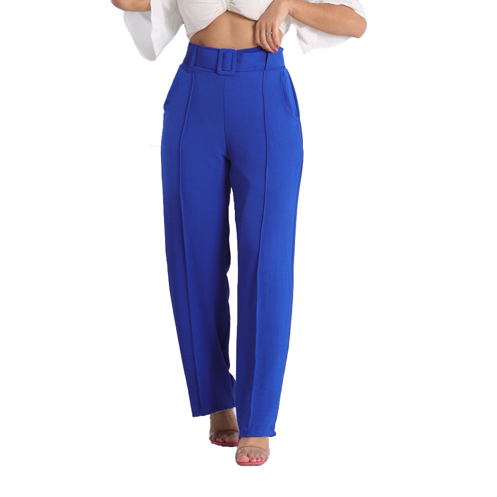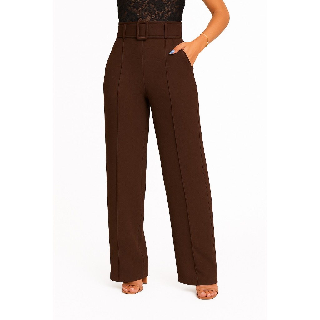 Calça Pantalona Feminina Alfaiataria Duna Plus Size Cintura Alta Com Bolso Social Wide Leg