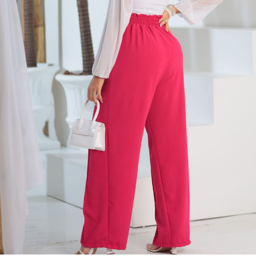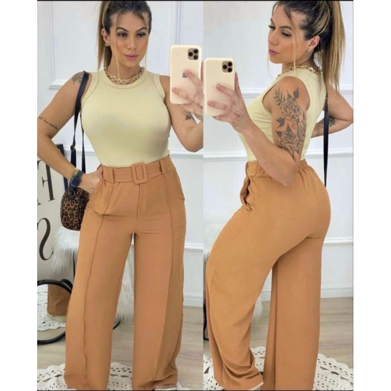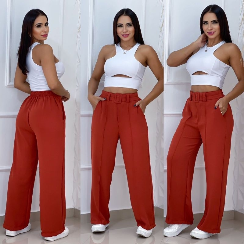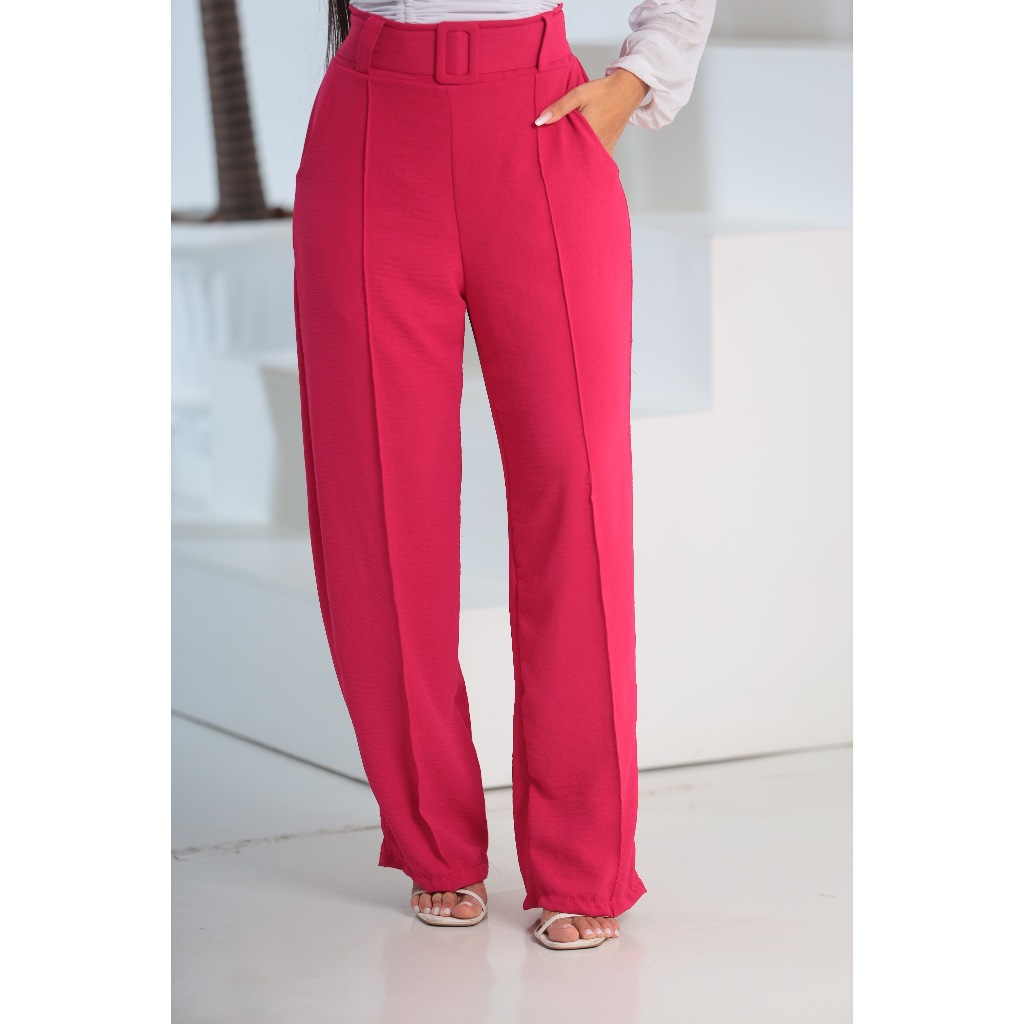 Calça Pantalona Feminina Alfaiataria Duna Plus Size Cintura Alta Com Bolso Social Wide Leg