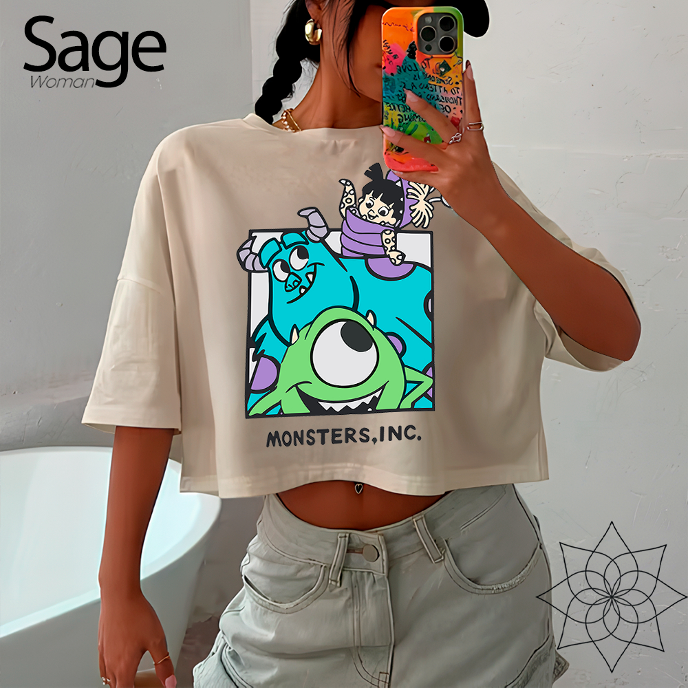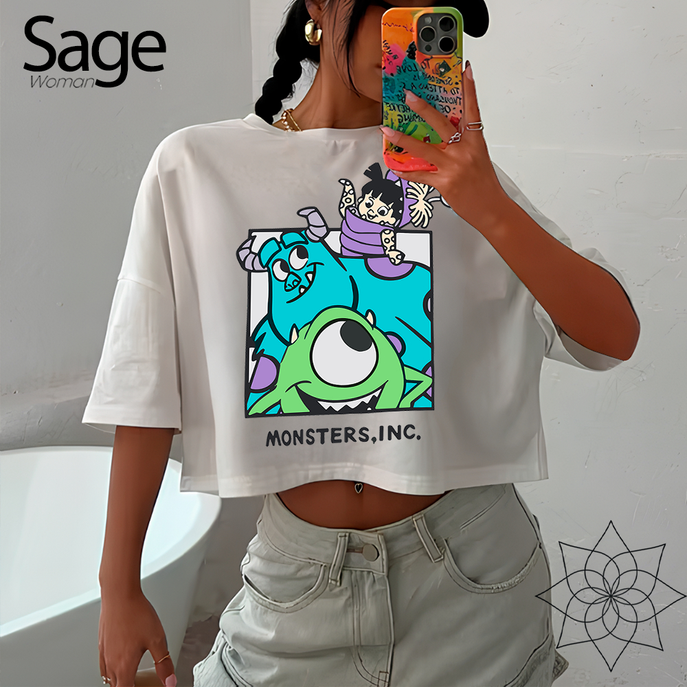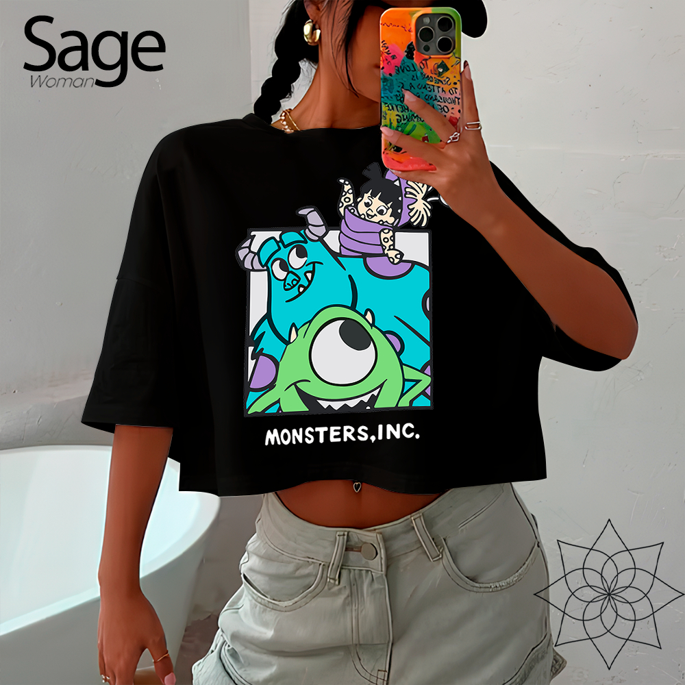 Blusa Cropped Feminino Oversized Desenho Animado Filme Monstros S.A Babys Cartoon