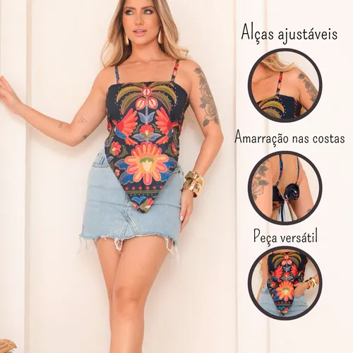 Blusinha Blusa Lenço Estampado Feminina Verão Tropical Verão Fresquinha Estilosa Alça Ajustavel