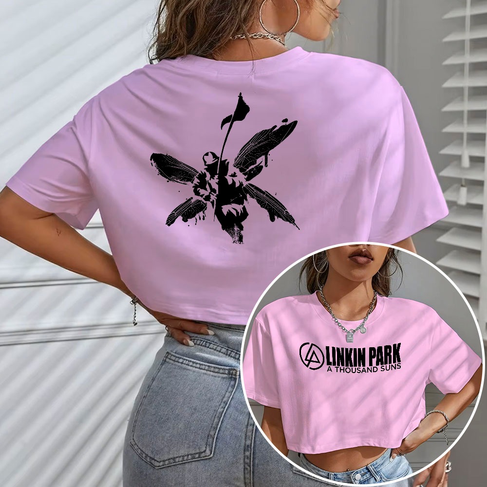 Blusa Cropped Feminina Simbolo Linkin Park Banda Rock Algodao Frente E Costas
