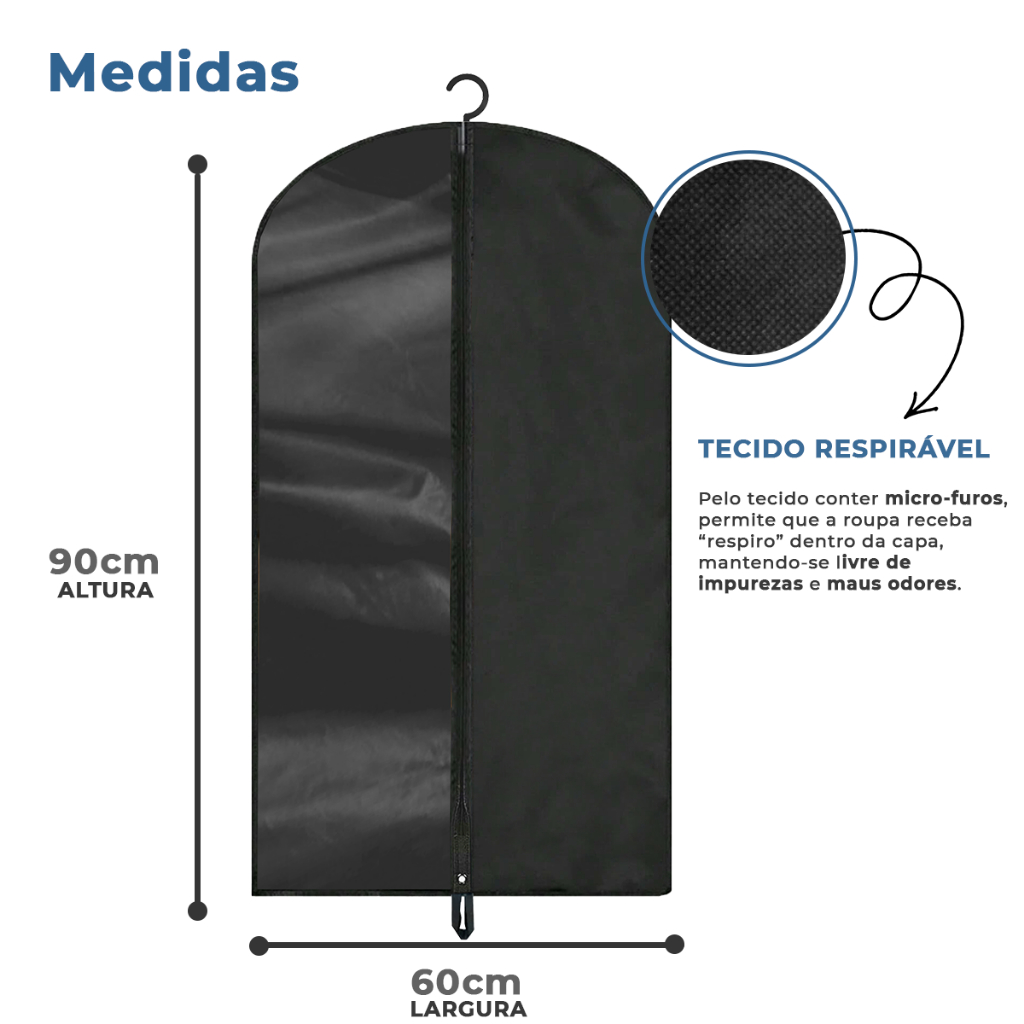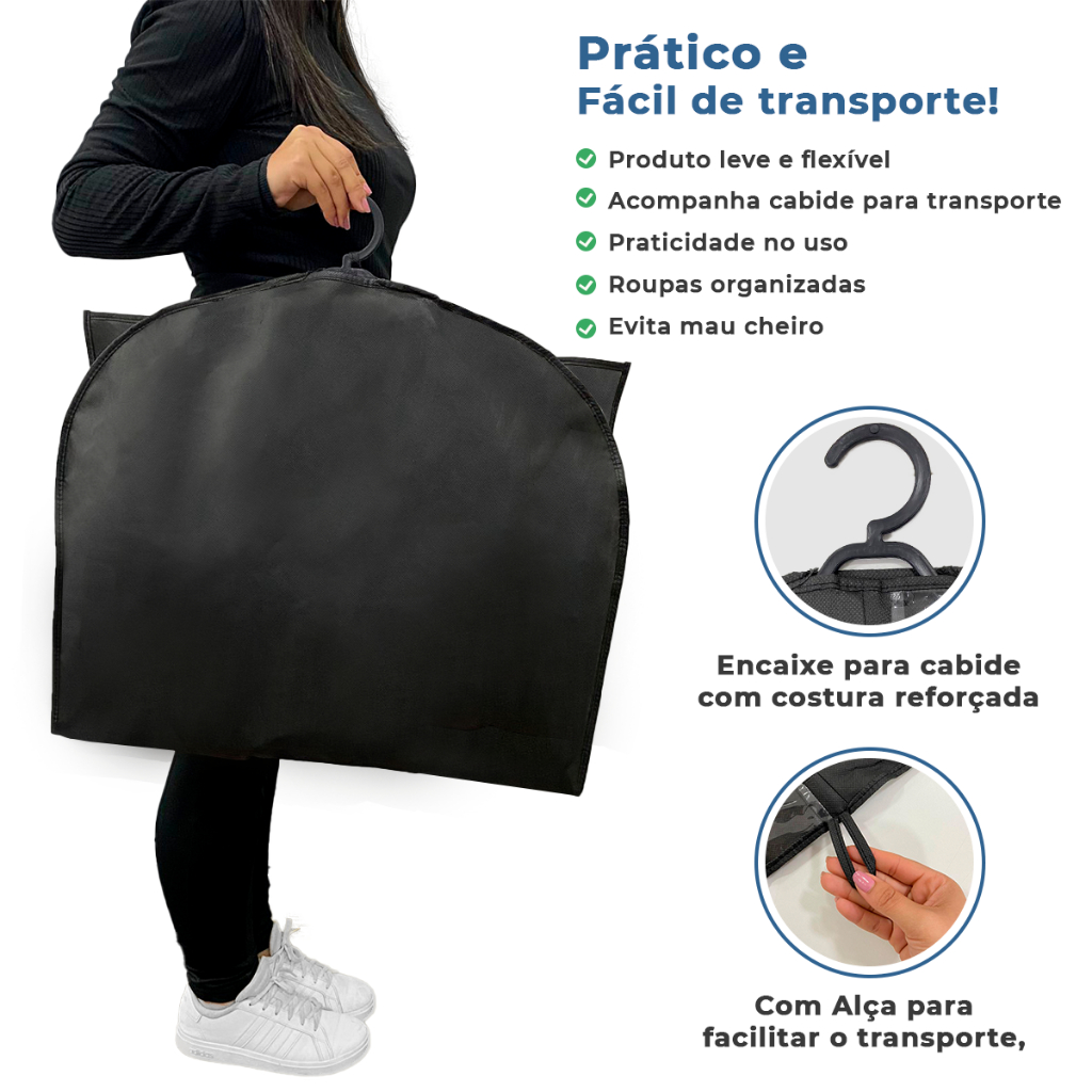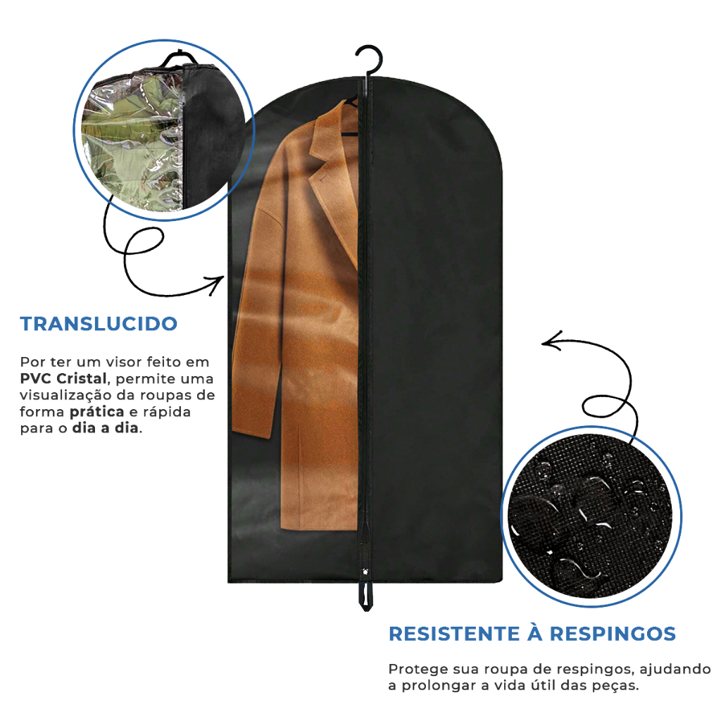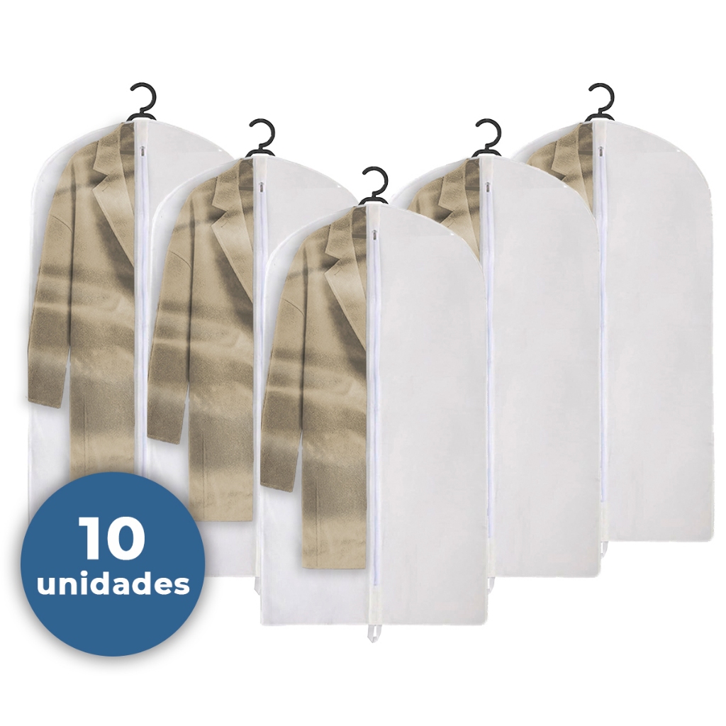 Kit 10 Capas Protetoras Com e Sem Visor Impermeáveis para Terno e Jaqueta – Anti Mofo com Zíper