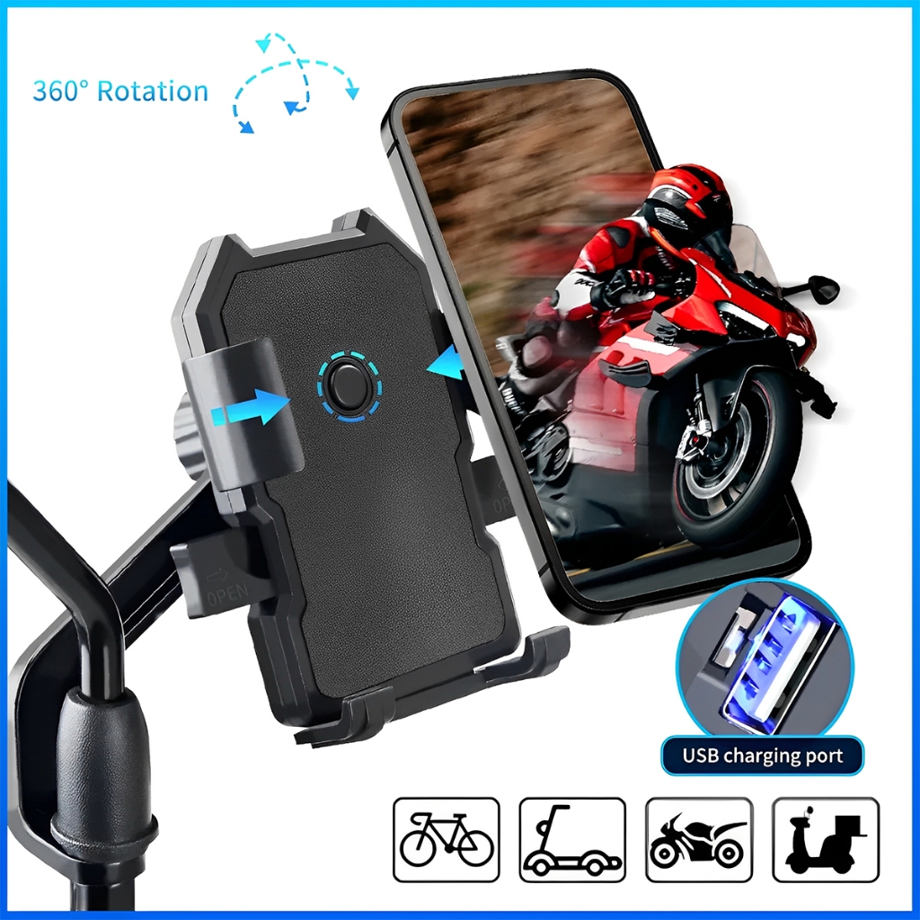 Suporte Para Celular 360 Graus Moto E Bicicleta Universal Retroisor De Ferro Gps Suporte Celular Biz