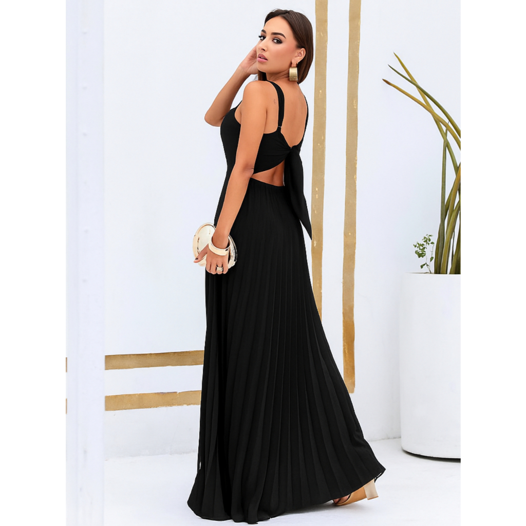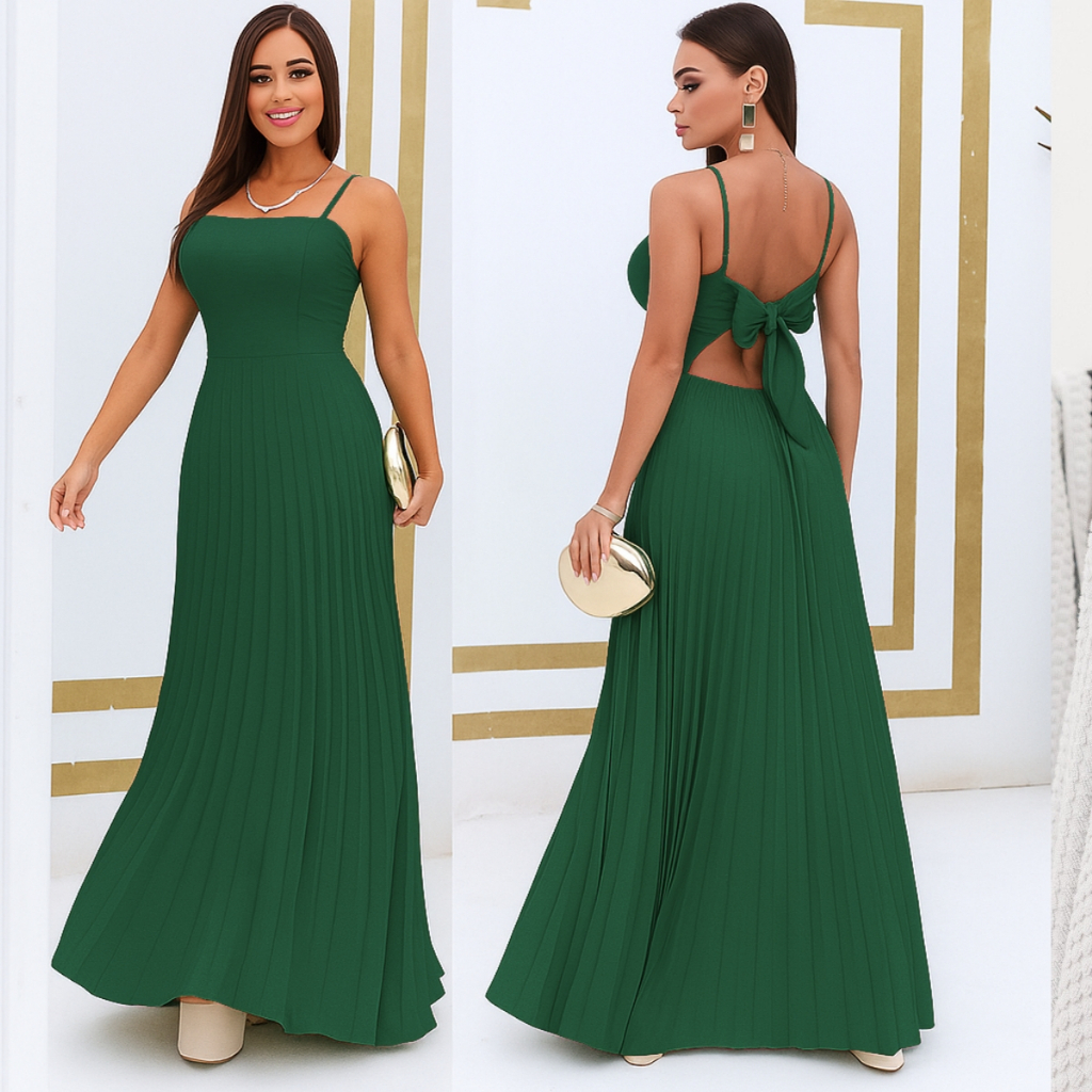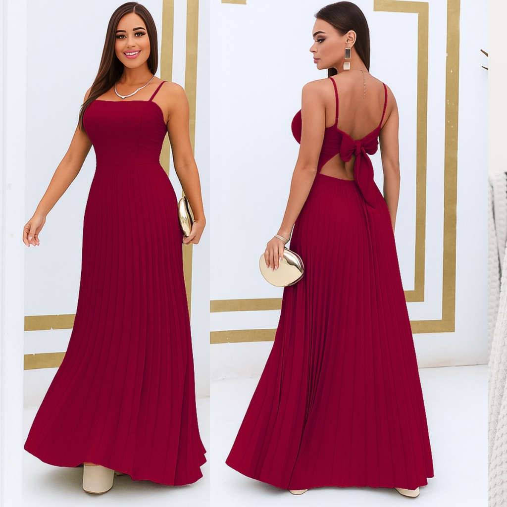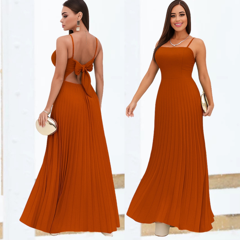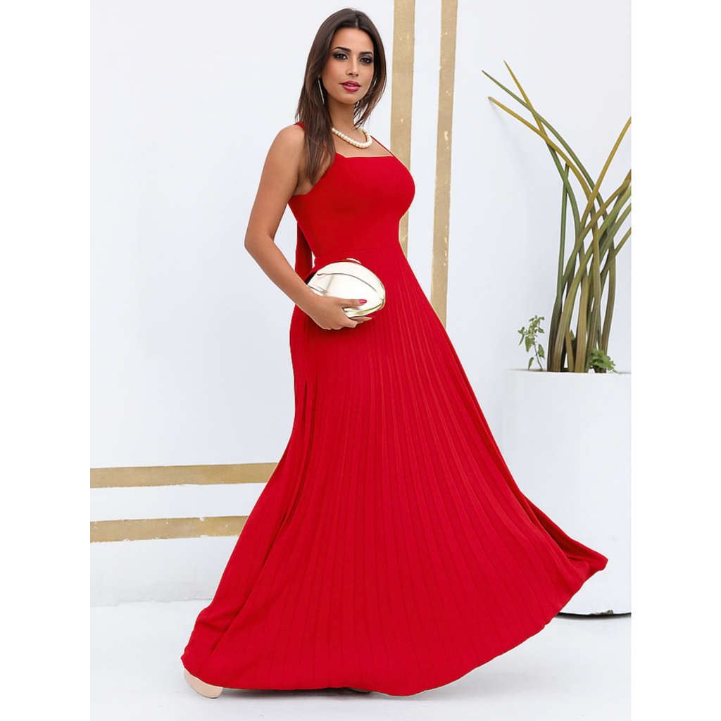 Vestido Plissado Feminino Alças Regulável Forrado Com Bojo Tecido Duna