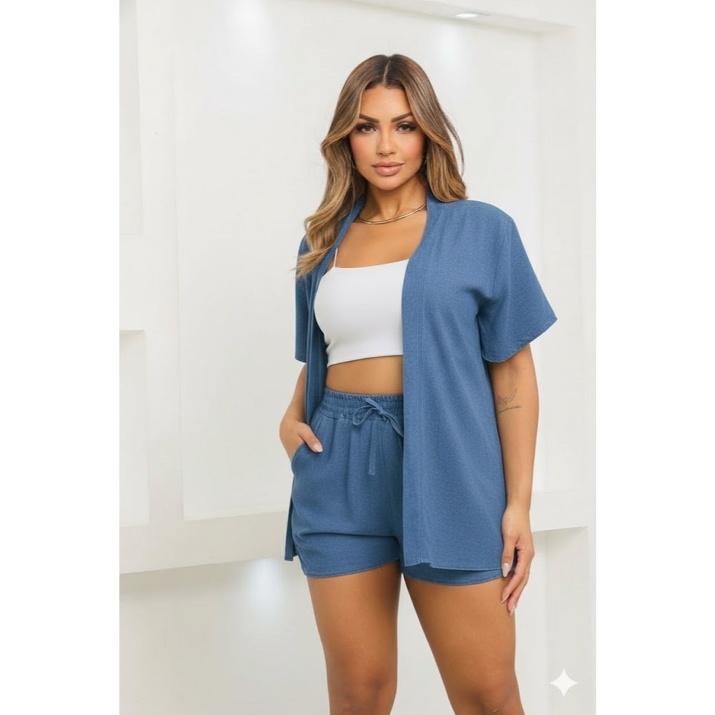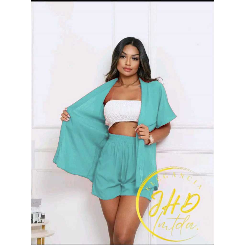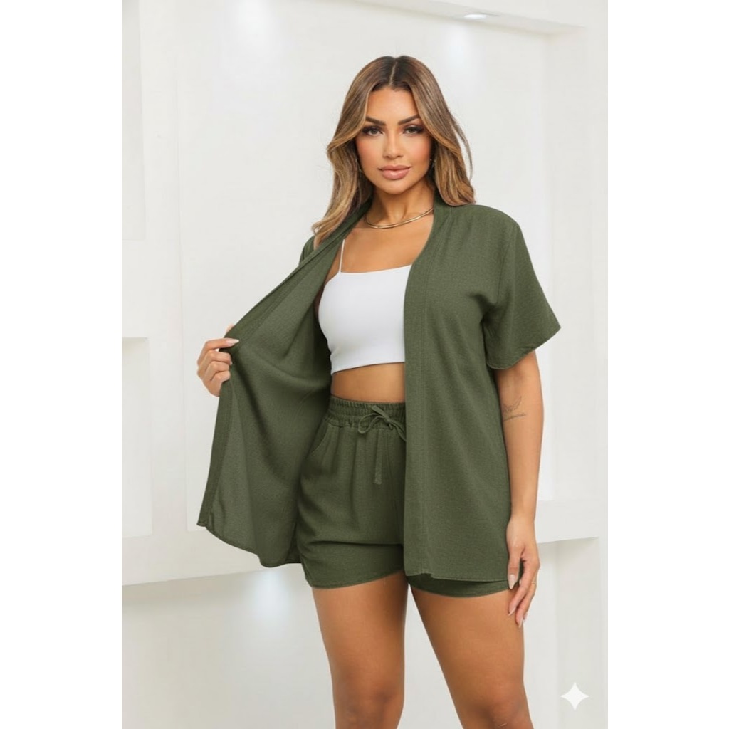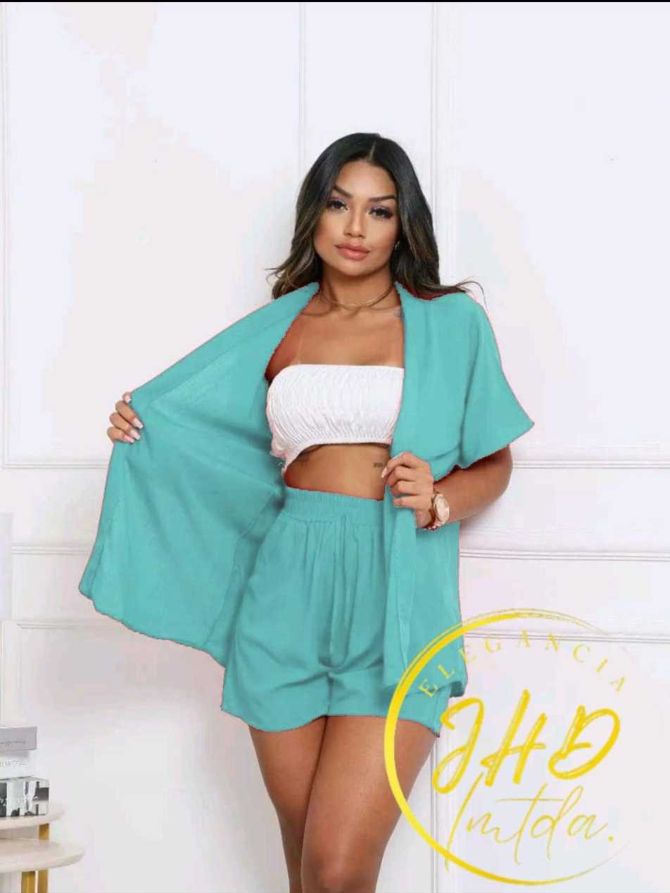 Conjunto KIMONO Femenino 2 peças Short e Blusa manga curta tecido VISCOLINHO