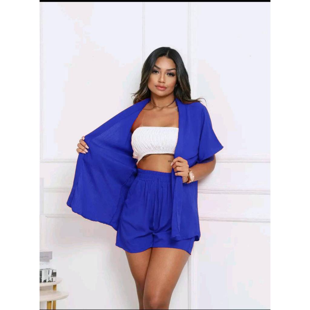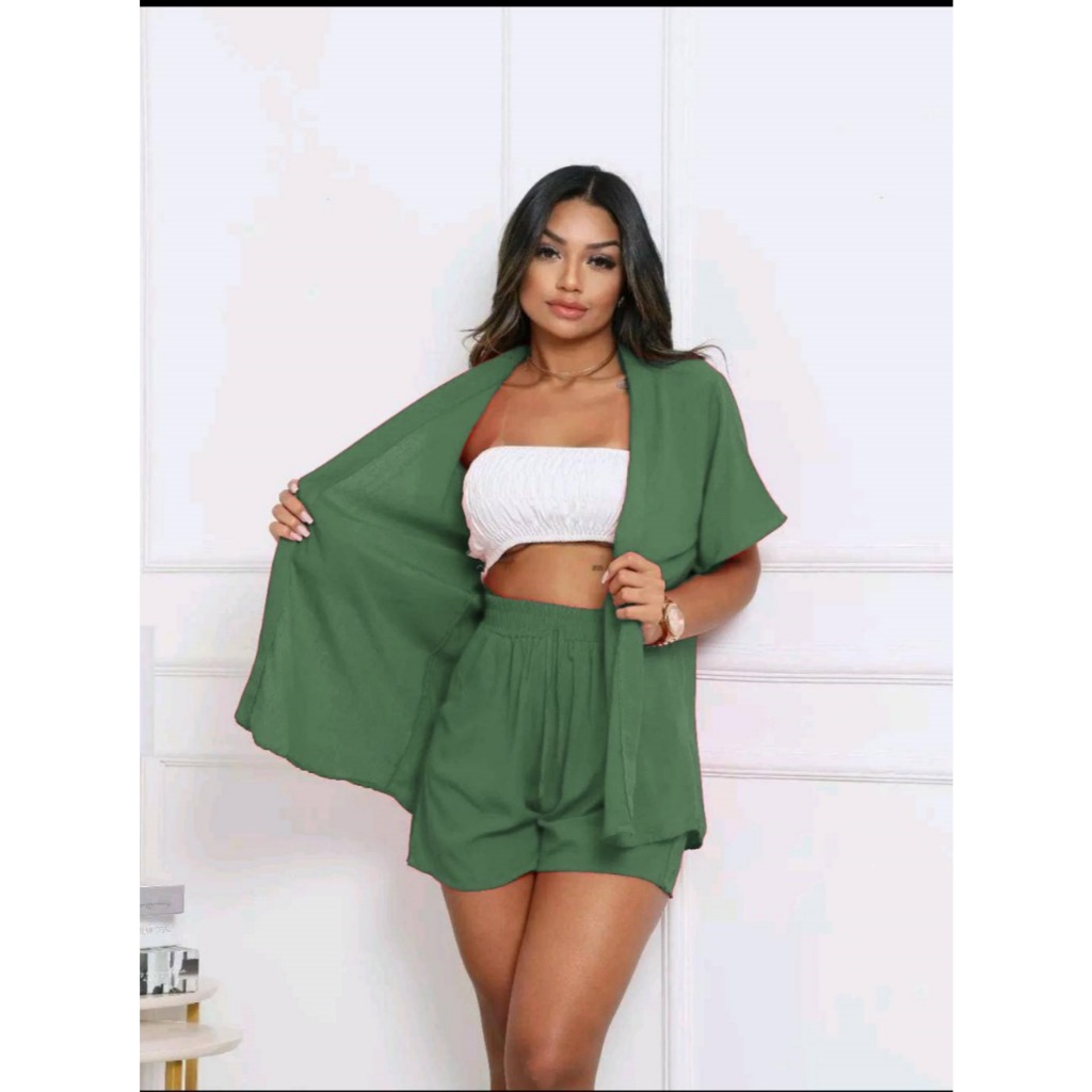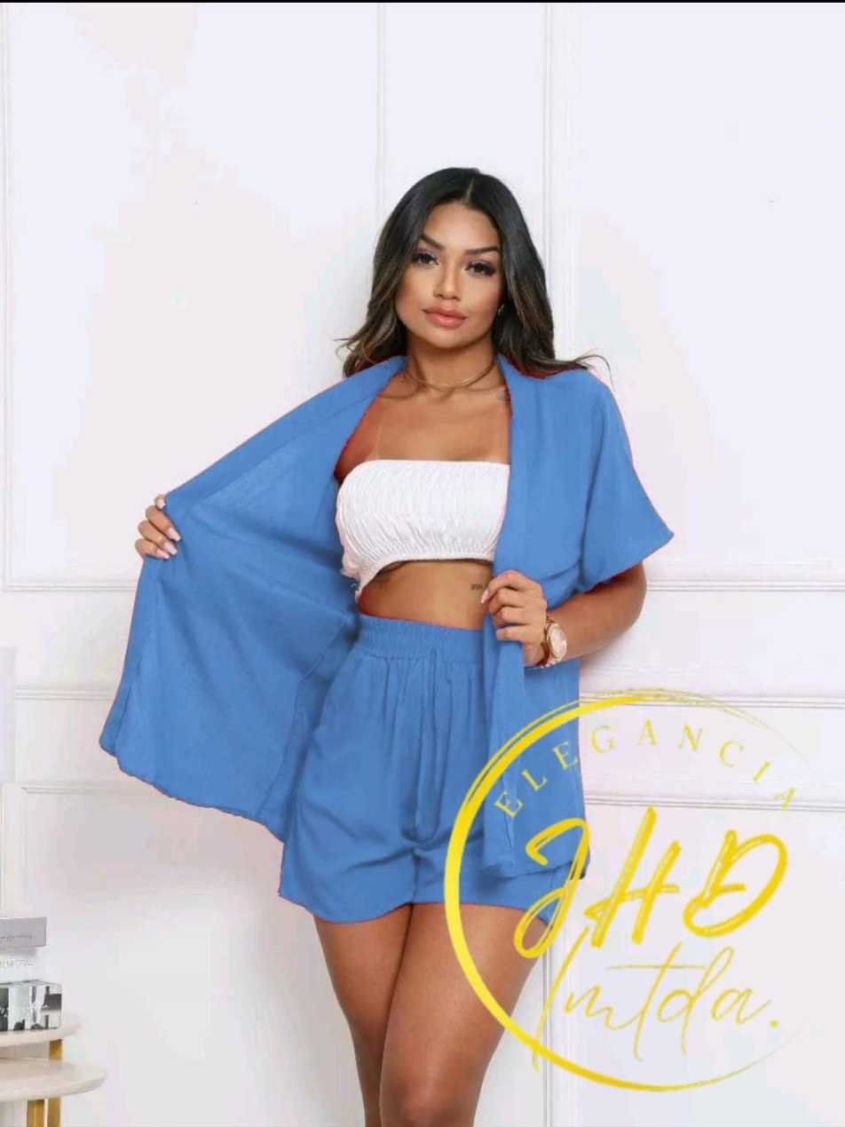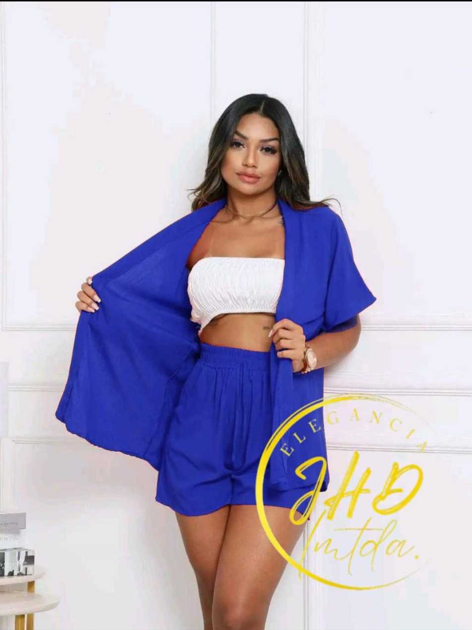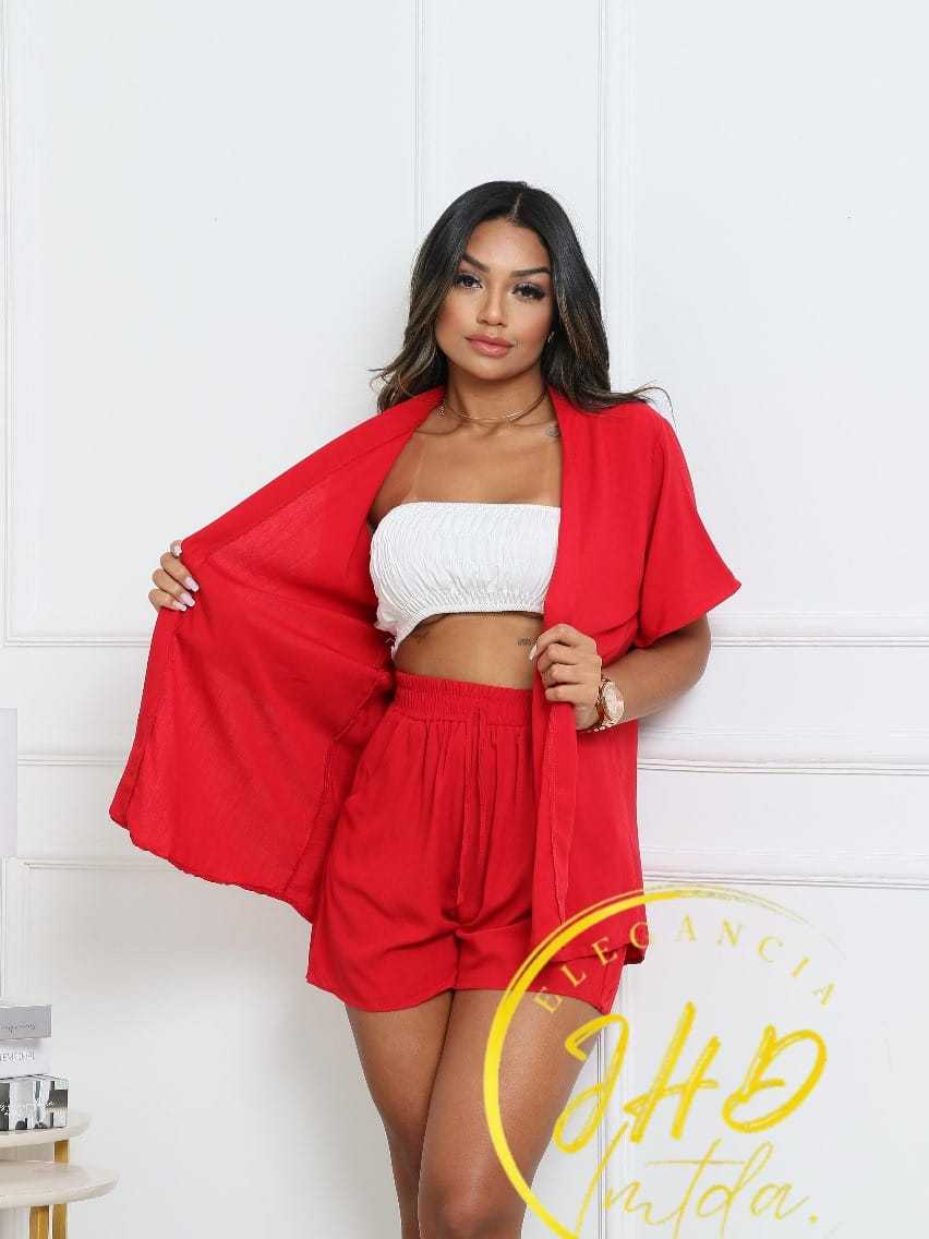 Conjunto KIMONO Femenino 2 peças Short e Blusa manga curta tecido VISCOLINHO