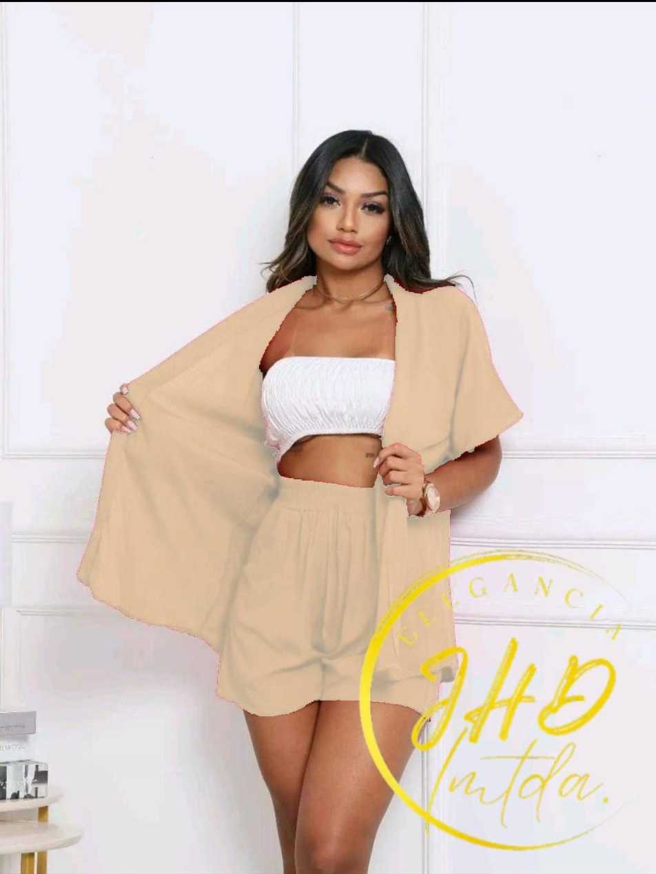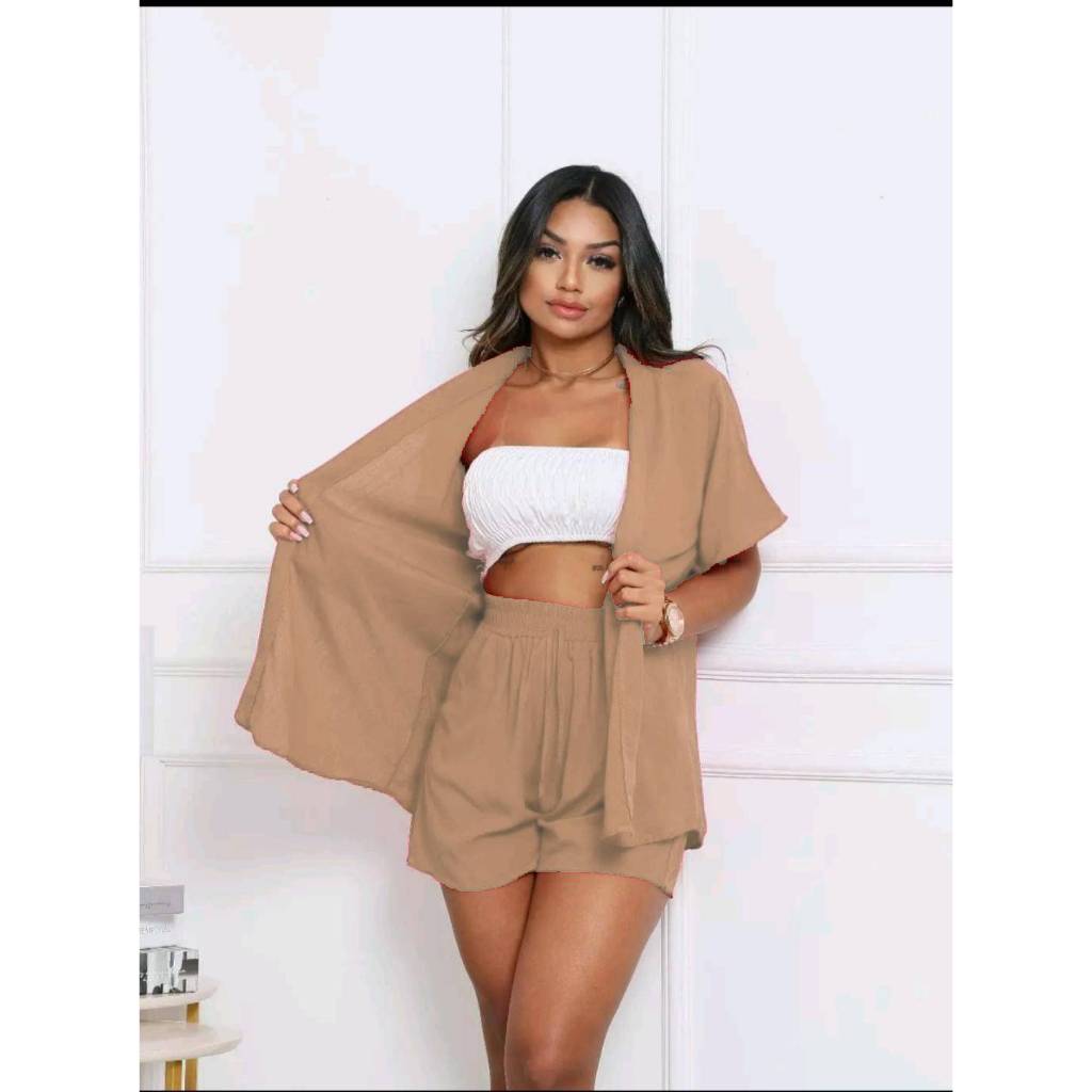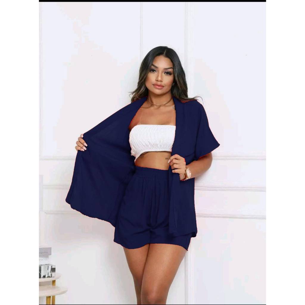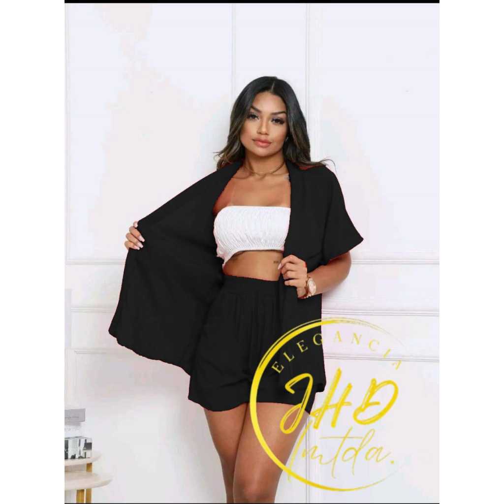 Conjunto KIMONO Femenino 2 peças Short e Blusa manga curta tecido VISCOLINHO
