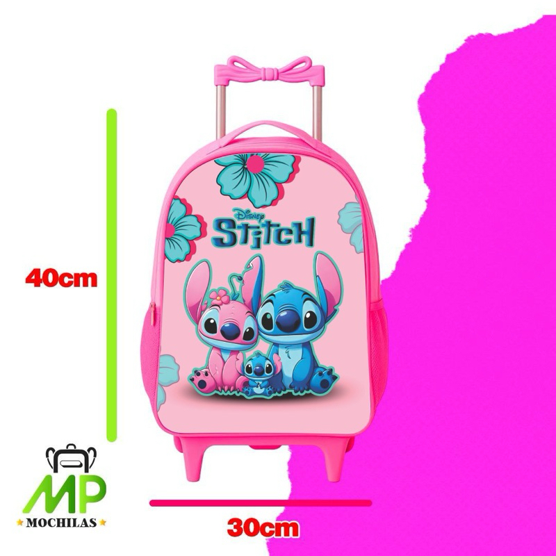 KIT Mochila+Lancheira+estoujo Infantil Stich Rosa - REFORÇADA