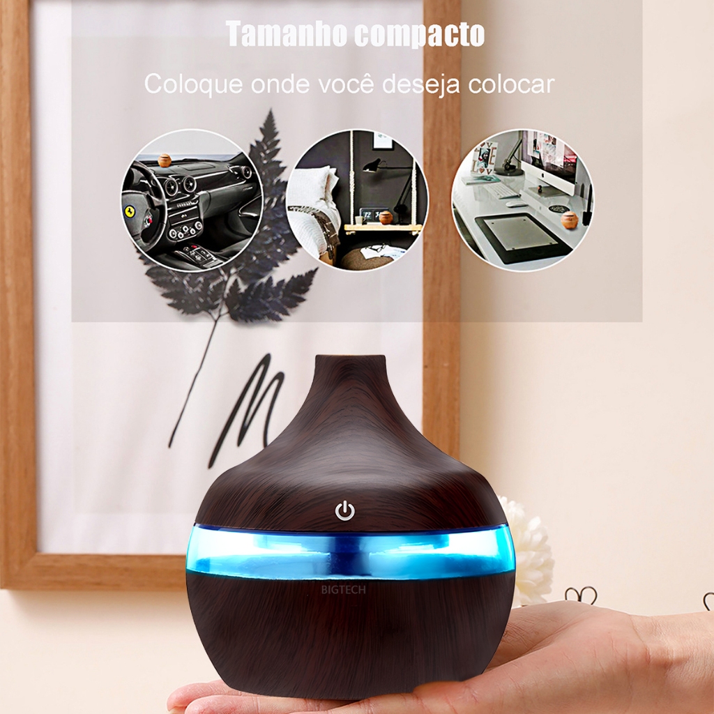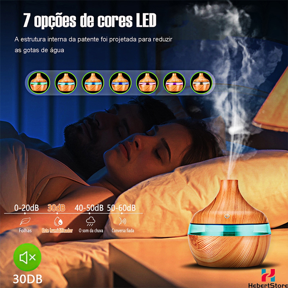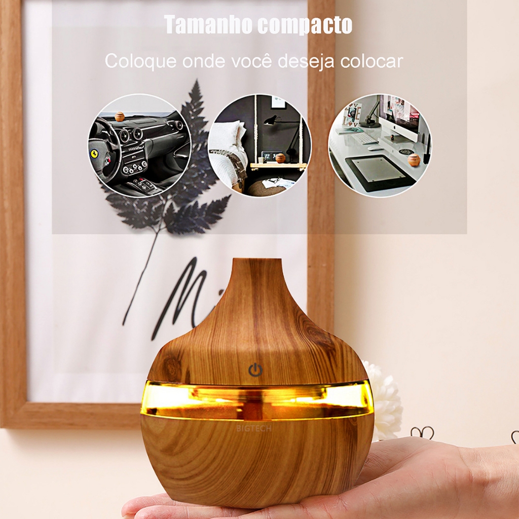 Umidificador De Ar E Aromatizador 8 Horas Madeira Com Led 4 Em 1 Multifuncional Para Quarto UM003