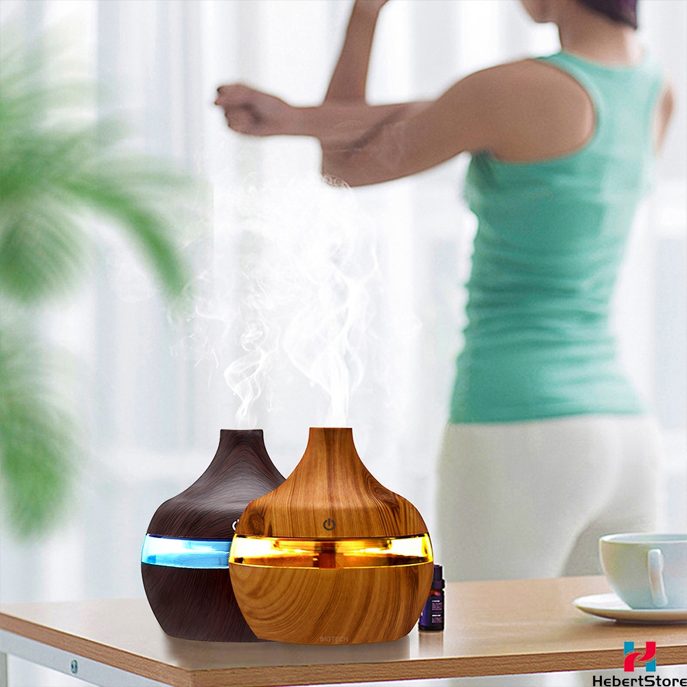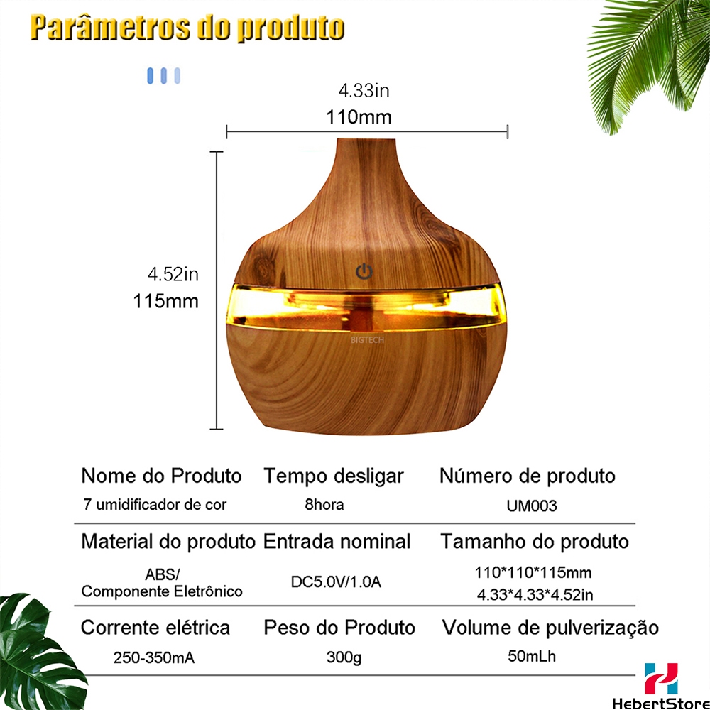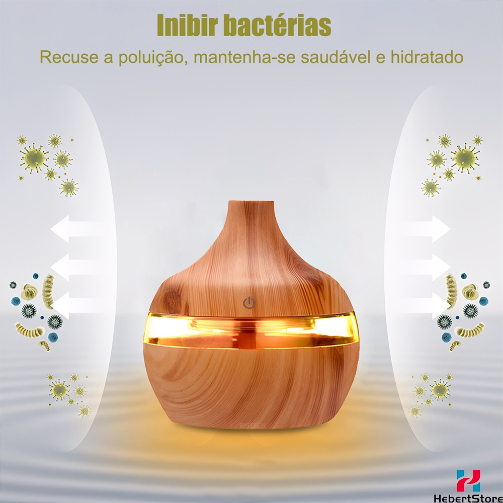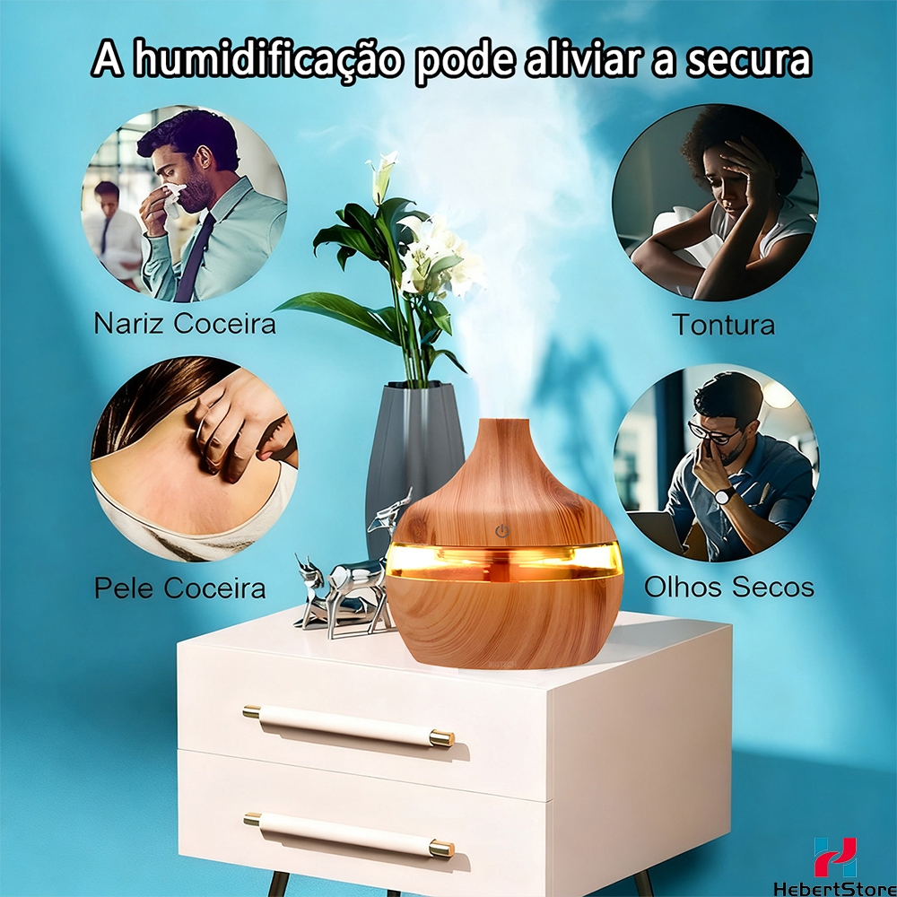 Umidificador De Ar E Aromatizador 8 Horas Madeira Com Led 4 Em 1 Multifuncional Para Quarto UM003