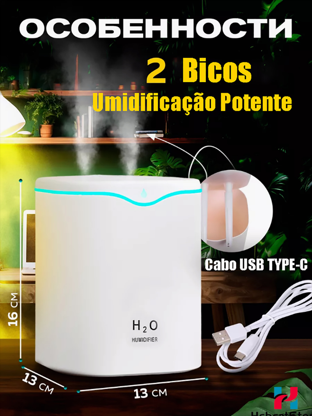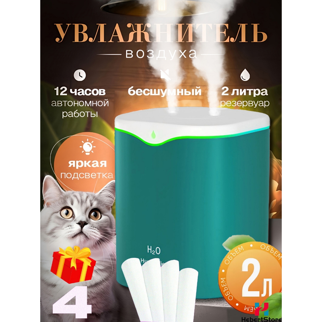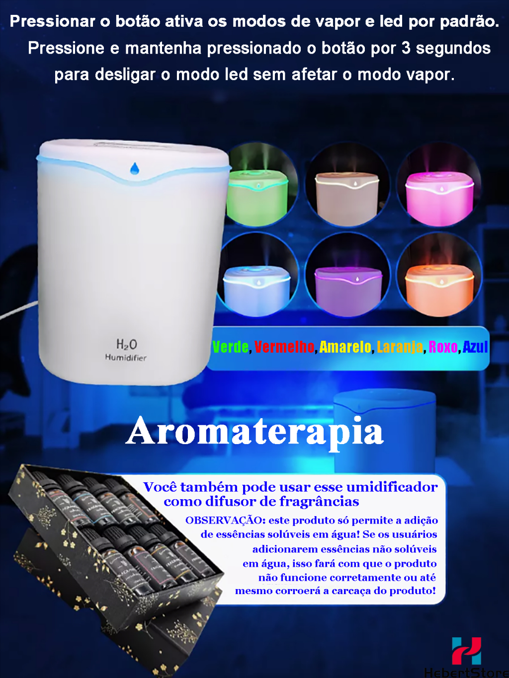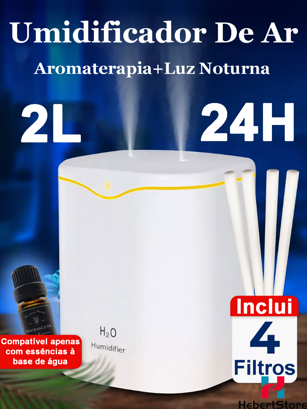 Umidificador de Ar e Aromatizador Grande 2 Litros 24 Horas com 2 Saídas de Ar e Led 3 em 1 Multifuncional para Quarto