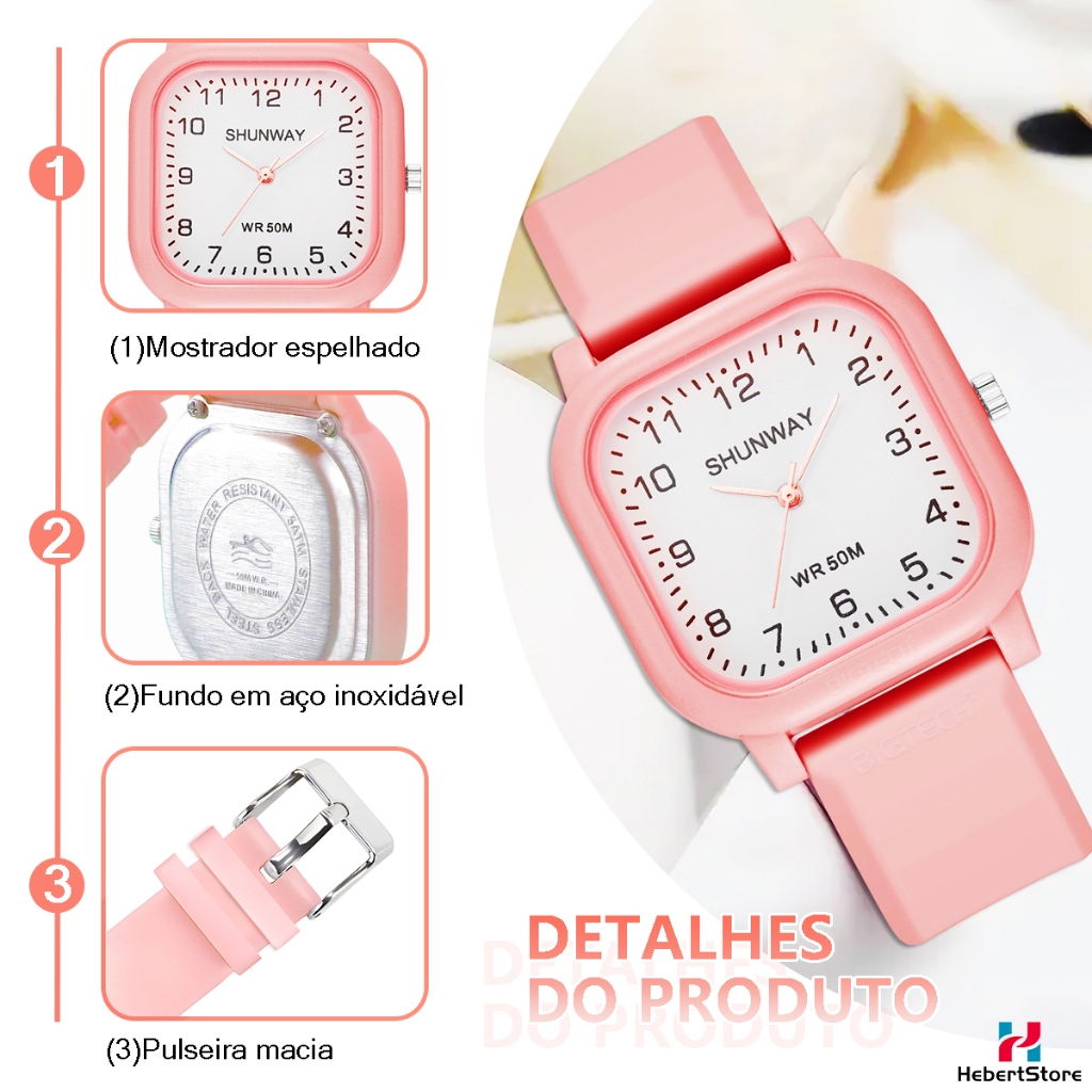 Quartz Feminino Simples À Prova D 'Água Casual Relógio Casual Esportivo Quadrado