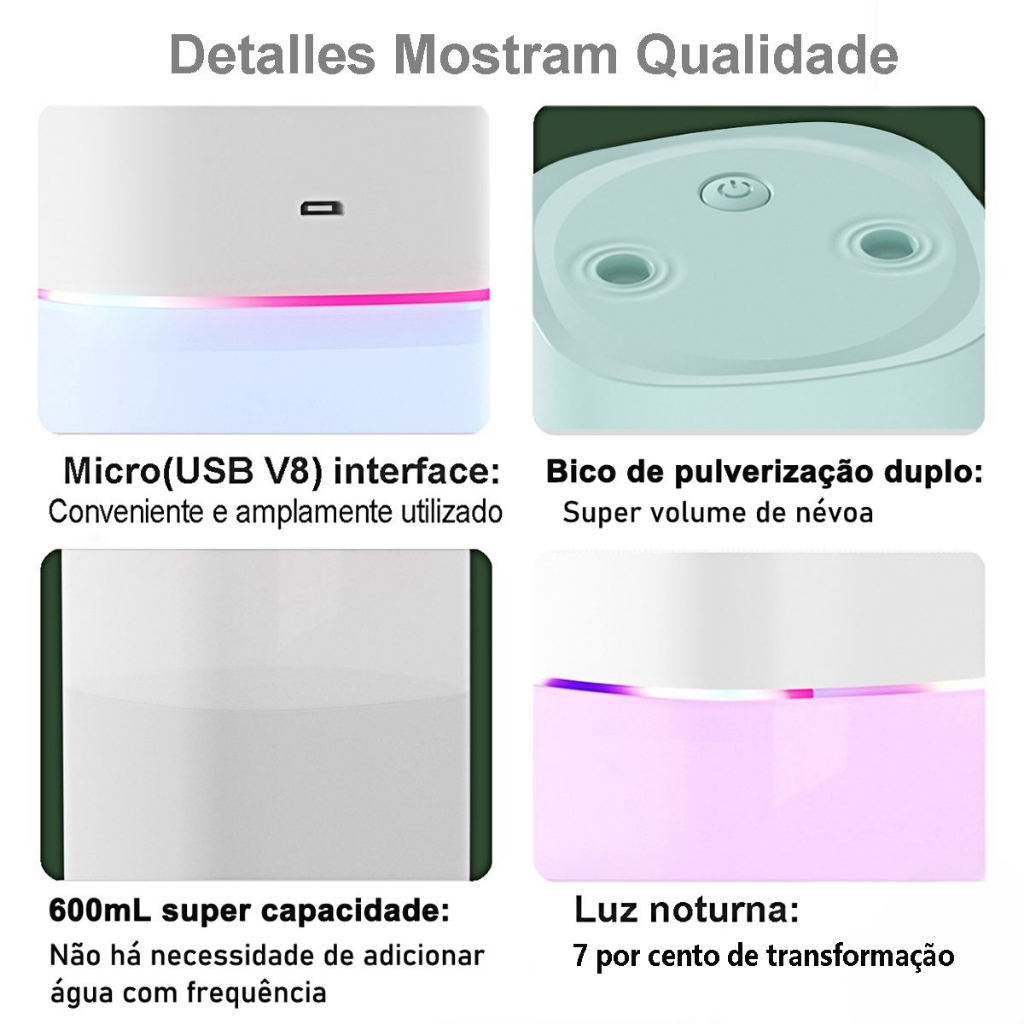 600ML Grande Umidificador Difusor Aromatizador Portátil Usb Led Aromatizador De Ambiente Purificador De Ar Spray Duplo