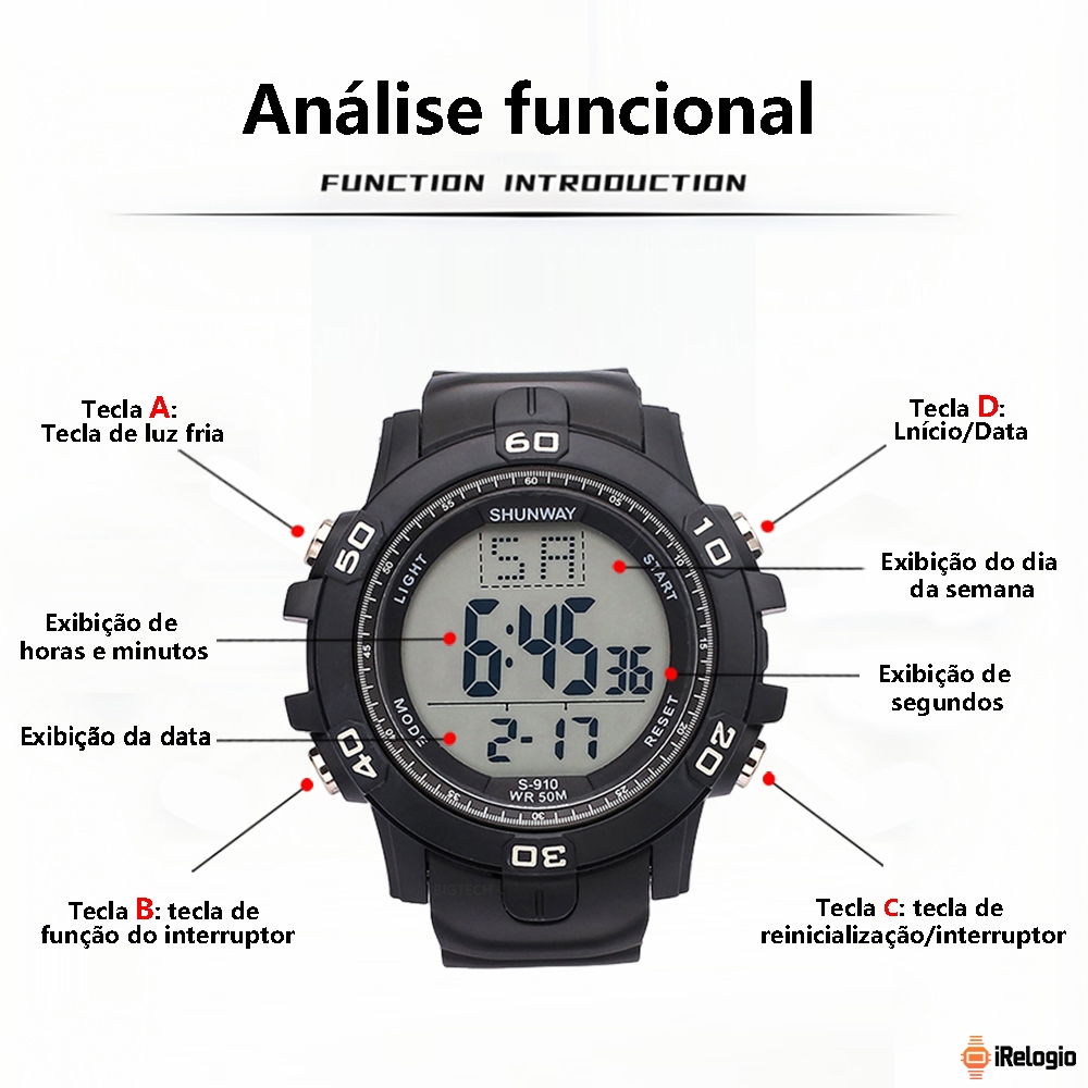 Relogio Masculino A Prova Dágua Com Led Luminoso Para Atividades Ao Ar Livre Relógio Esportivas CronômetroMultifuncional