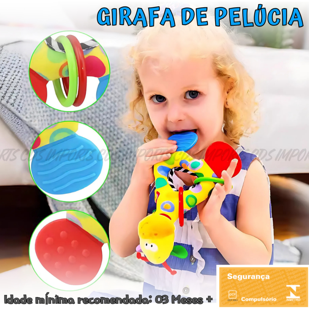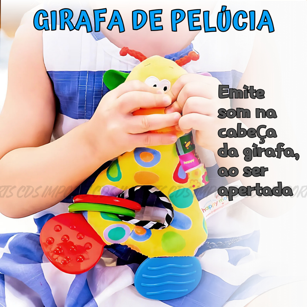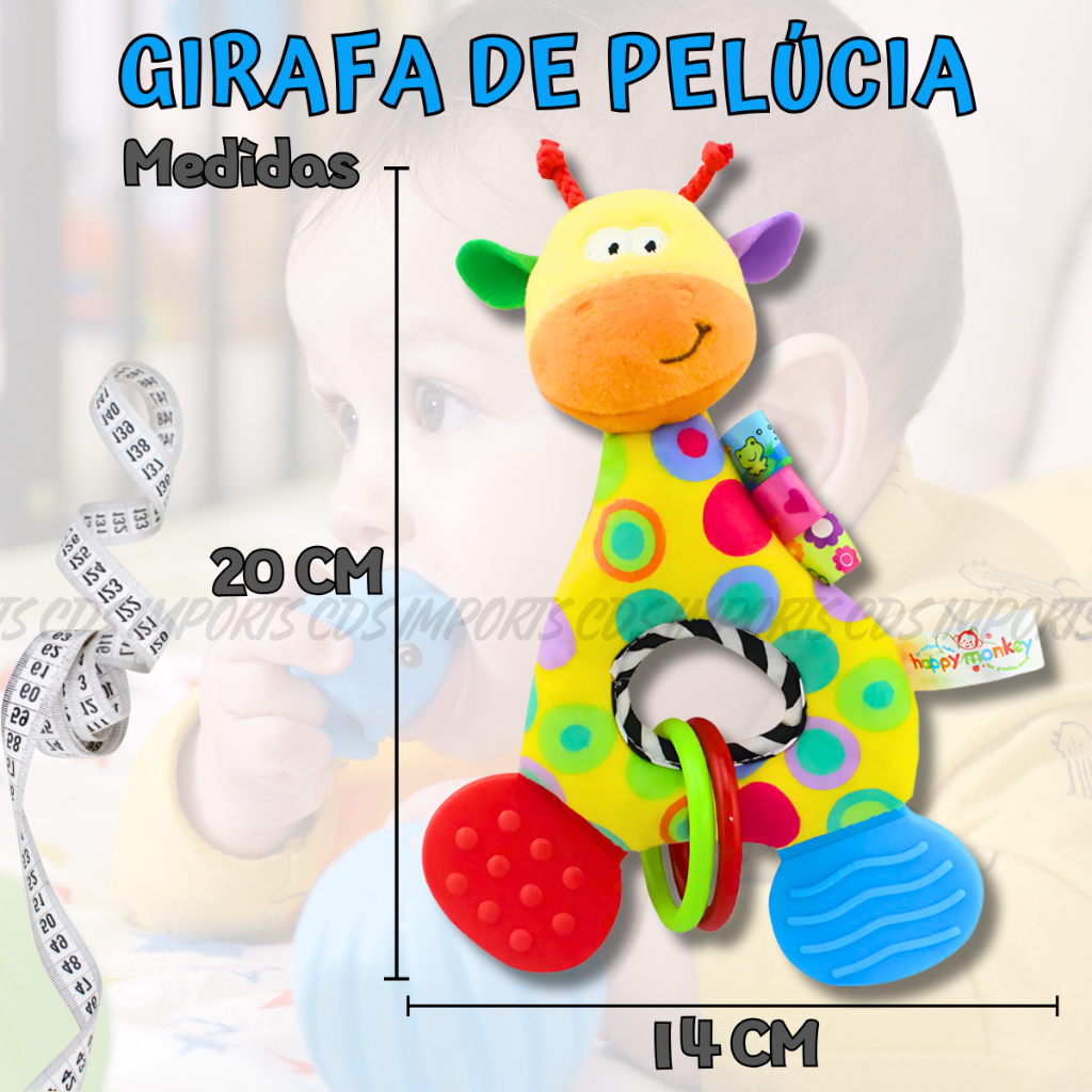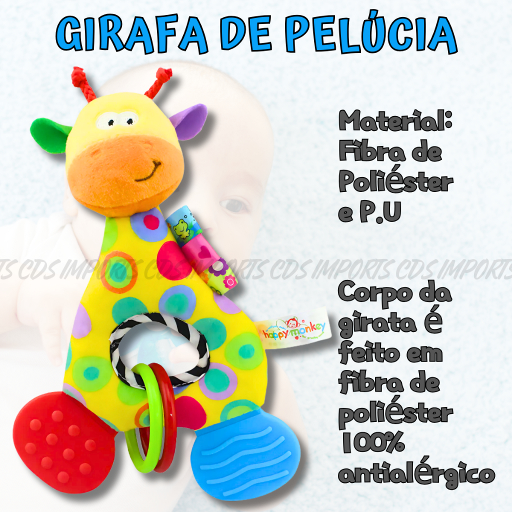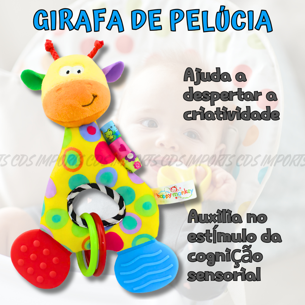 Mordedor Chocalho Para Bebê Girafa Pelúcia Móbile Brinquedo com Inmetro Hipoalergênico