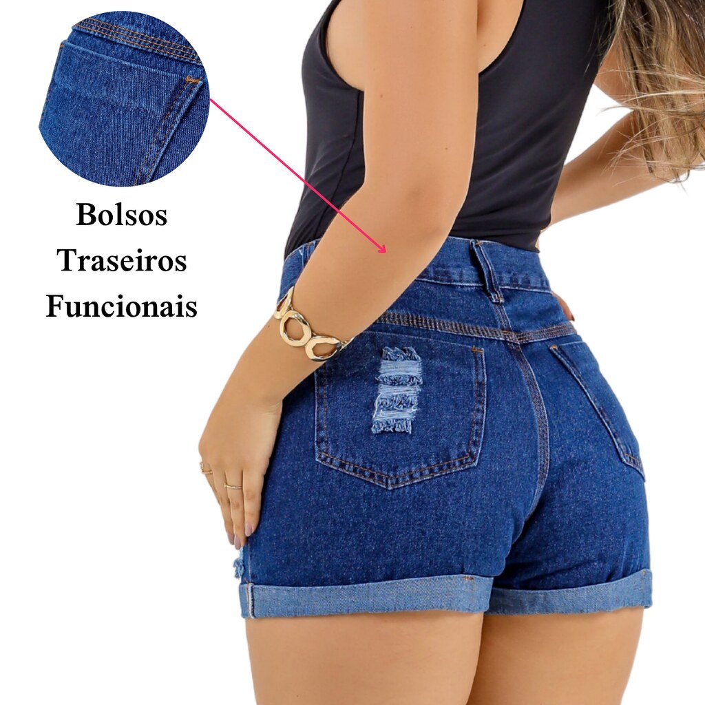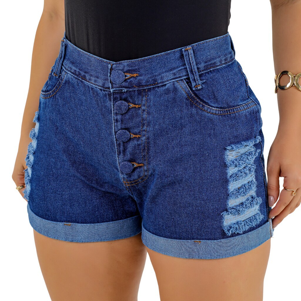 Short Jeans Feminino Soft Sky Direto Barra Dobrada Cintura Alta, PromoStor