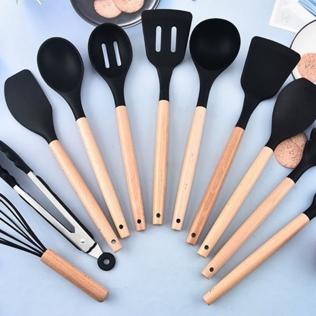 Kit Completo Jogo Utensílios de Cozinha Luxo 19 Peças Com Tábua em Silicone Espátula Faca Tesoura