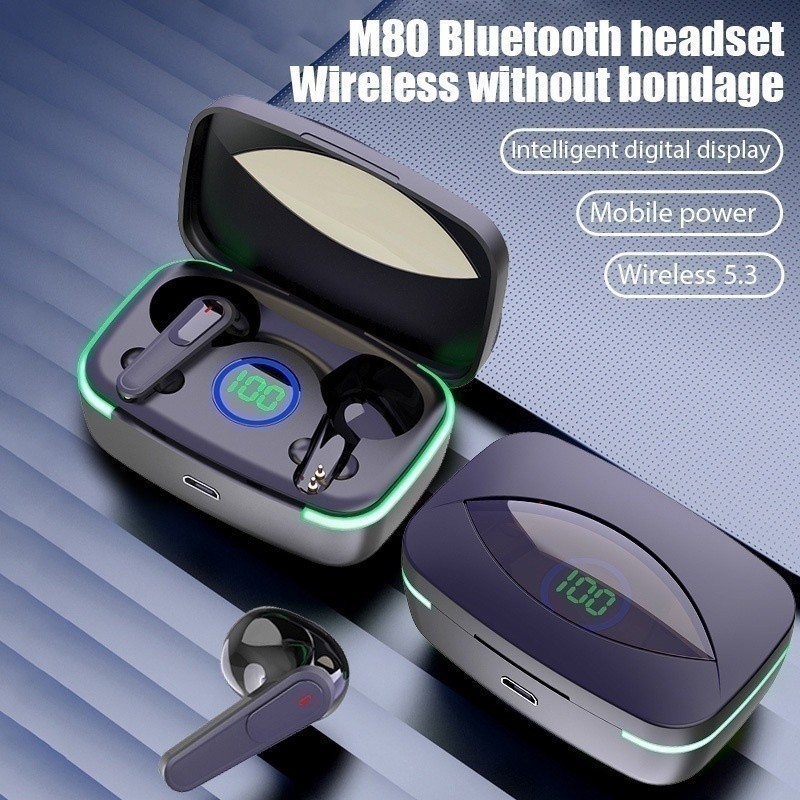 M80 Fone De Ouvido e Carregador de Celular Portátil Bluetooth Sem Fio 5.3 Fone Estéreo
