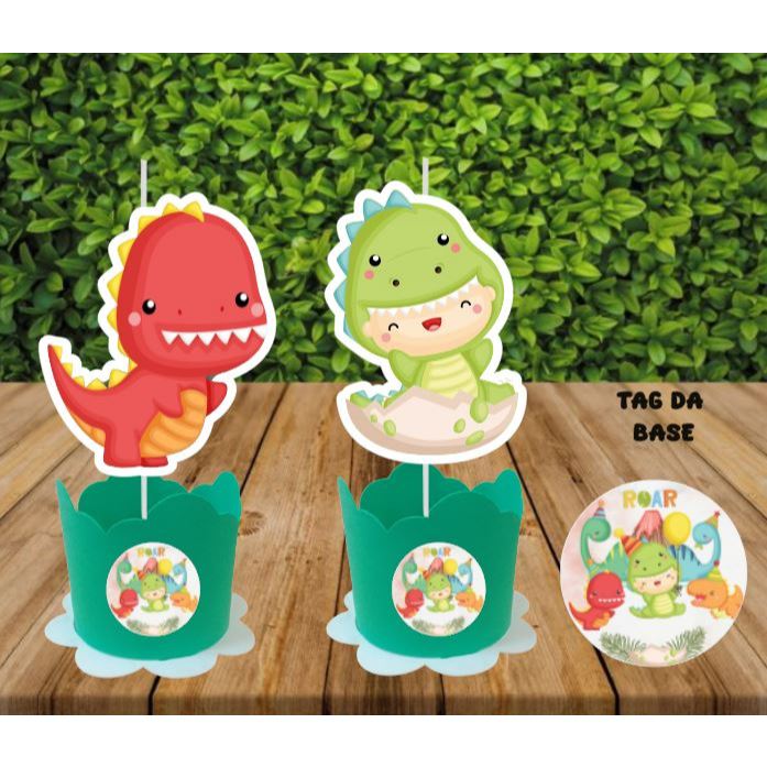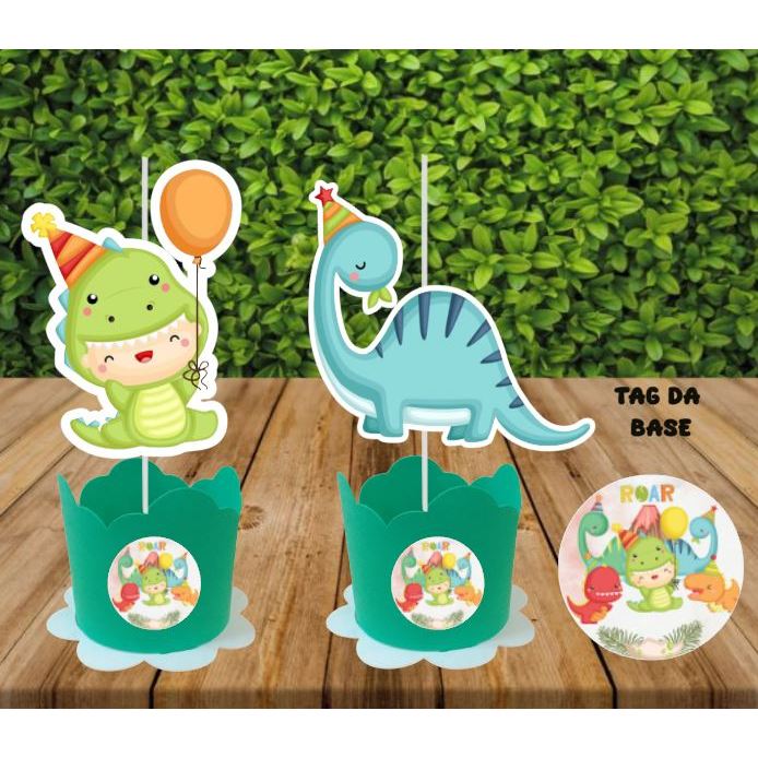 Centro de mesa Personalizado Dino Baby com suporte para balão! **ENVIO RÁPIDO - 4 DIAS ÚTEIS**