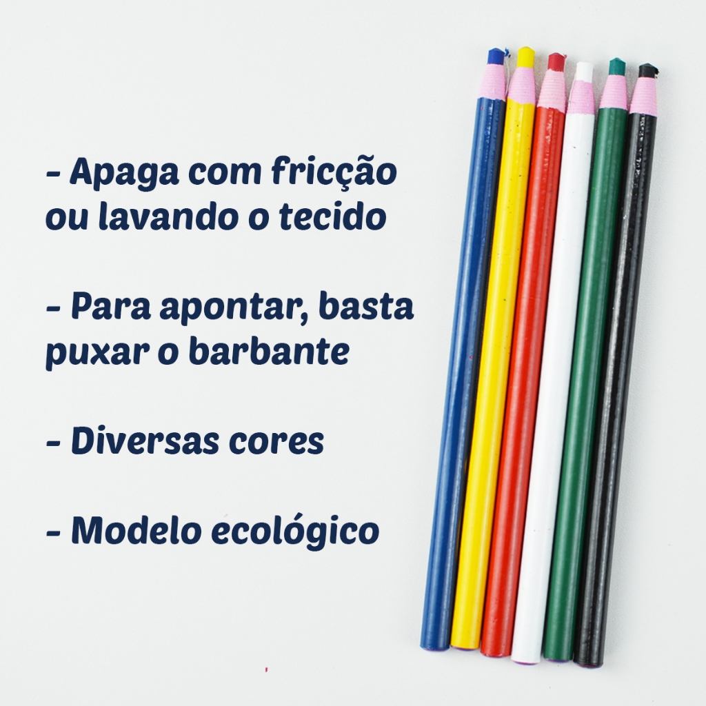 Lápis Marcador de Tecido Giz Alfaiate Marcar Riscar Tecido Patchwork Costura Diversas Cores