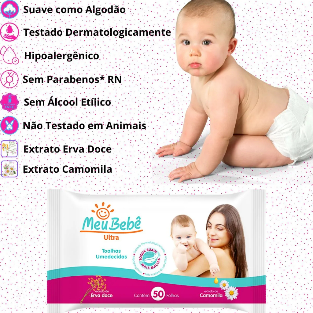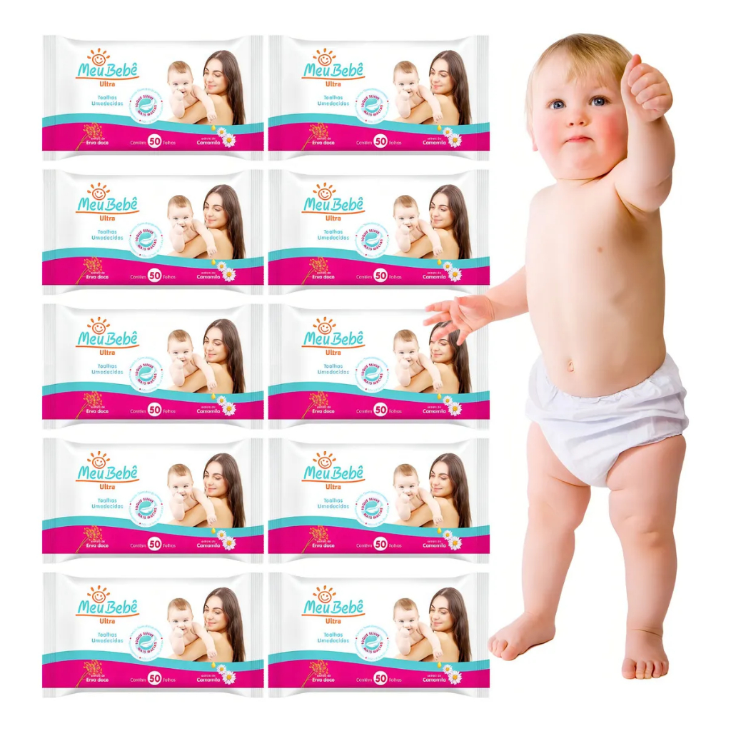Toalha Umedecida Meu Bebê Ultra Premium Caixa 10 Pacotes - 500 Lenços
