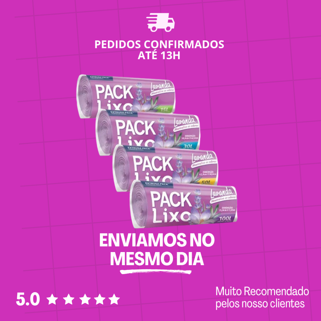 Saco de Lixo Pia e Banheiro Lavanda 38x34cm Kit 4 Pacotes (160 Sacos) Pack Lixo - Extrusa-Pack