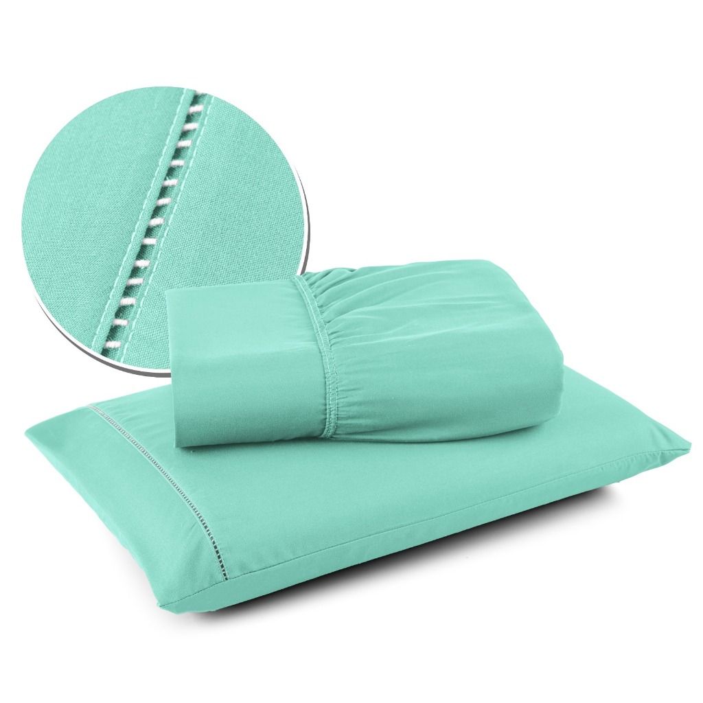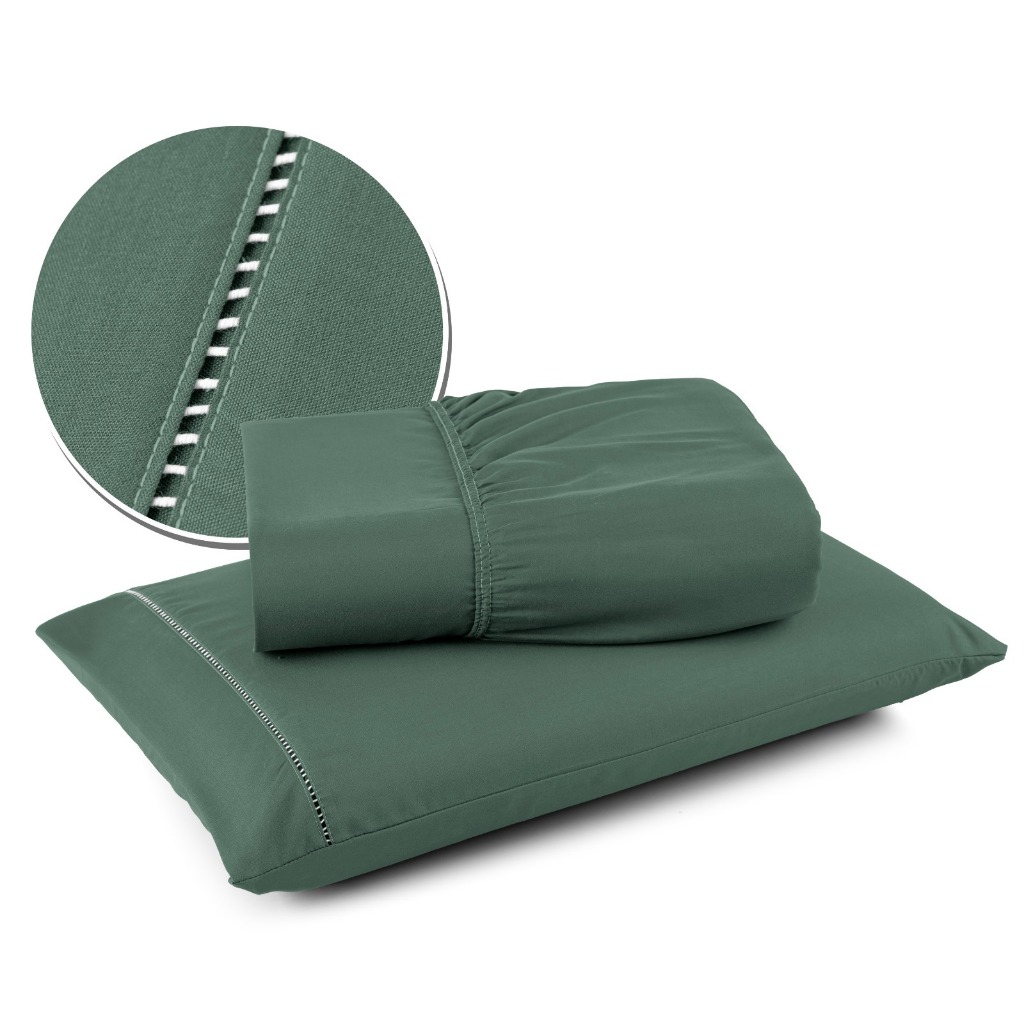 Jogo de Lençol Solteiro com Elástico e Fronhas Com Detalhe em Ponto Palito 400 Fios - GRUPO COTELAR