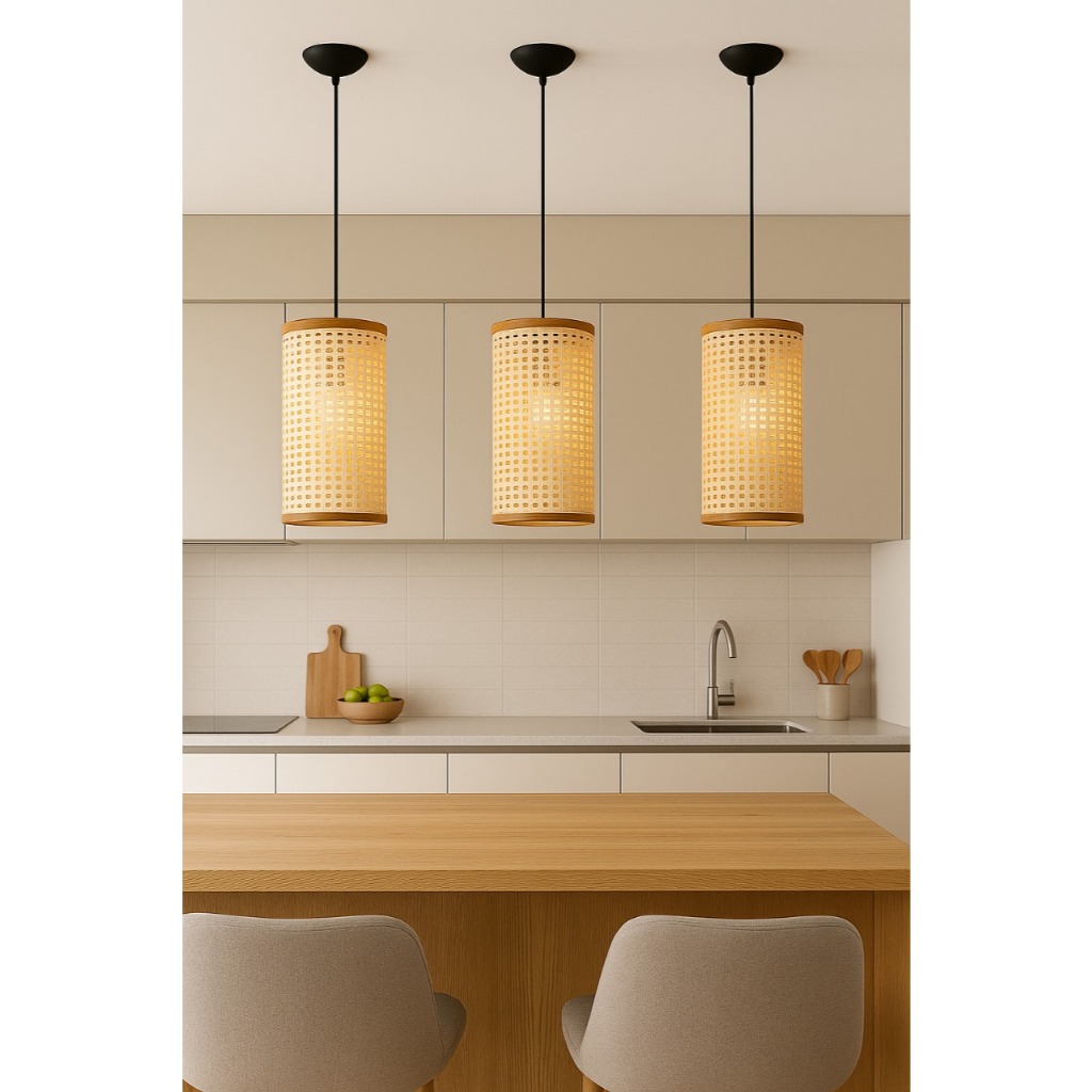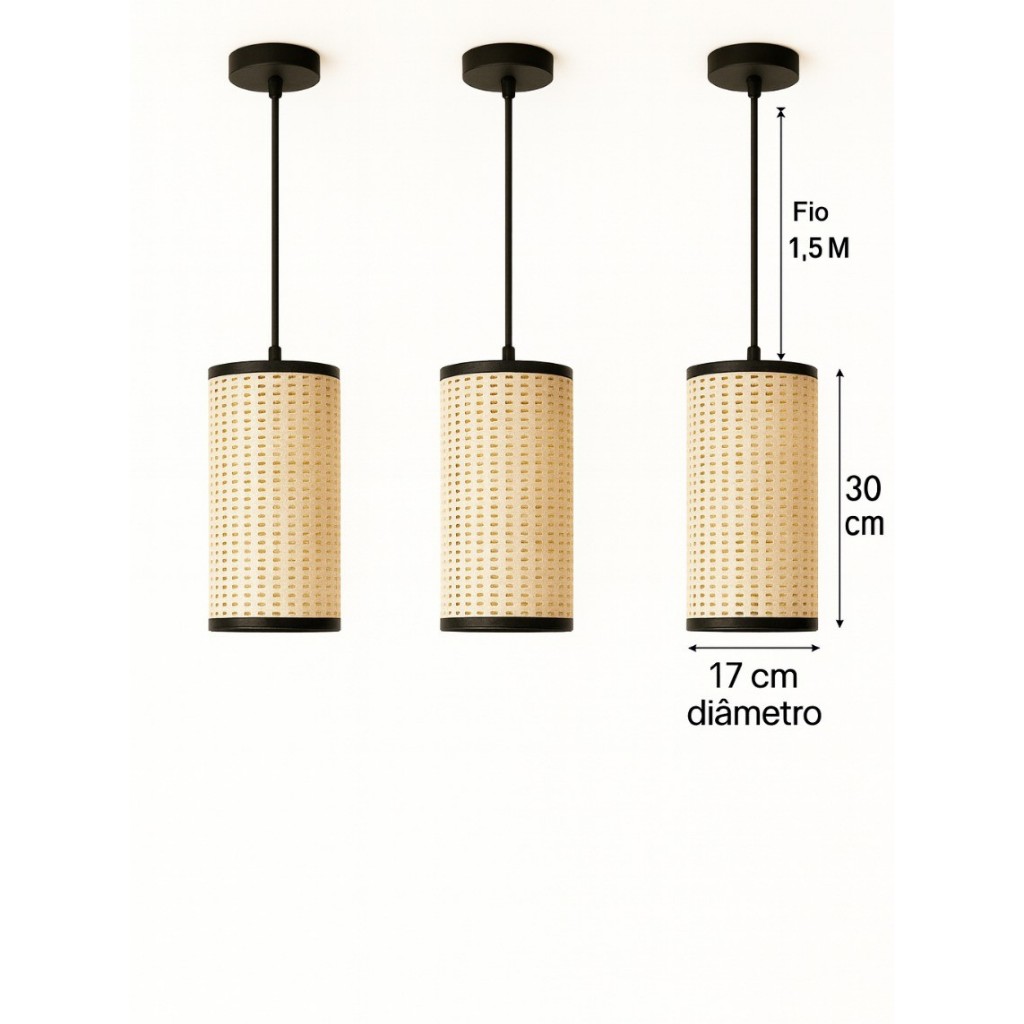 Kit 3 Pendentes Palha Sintético 30x17cm Para Sala, Quarto, Cozinha, Ambiente Moderno, Decoração moderna