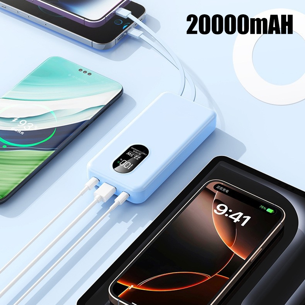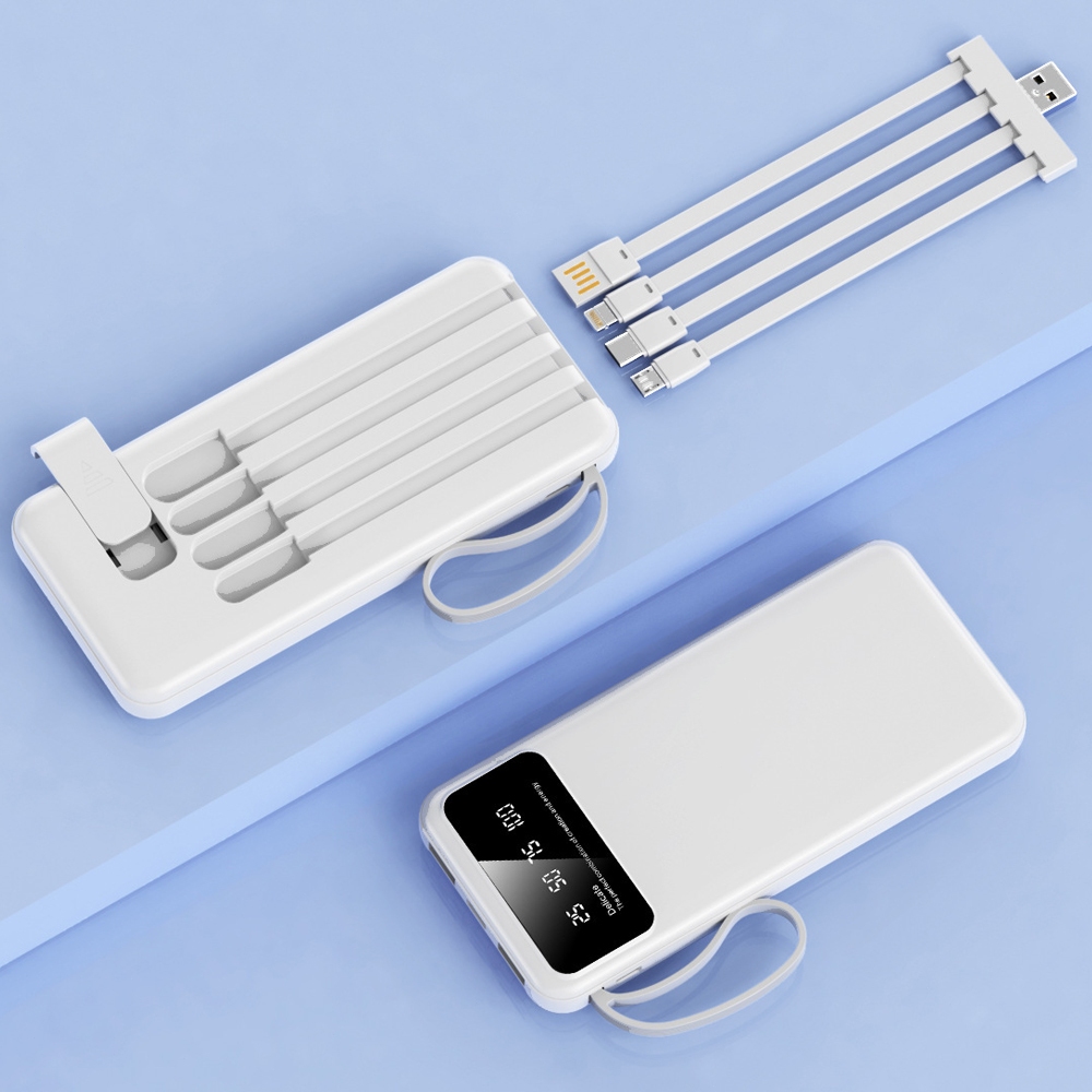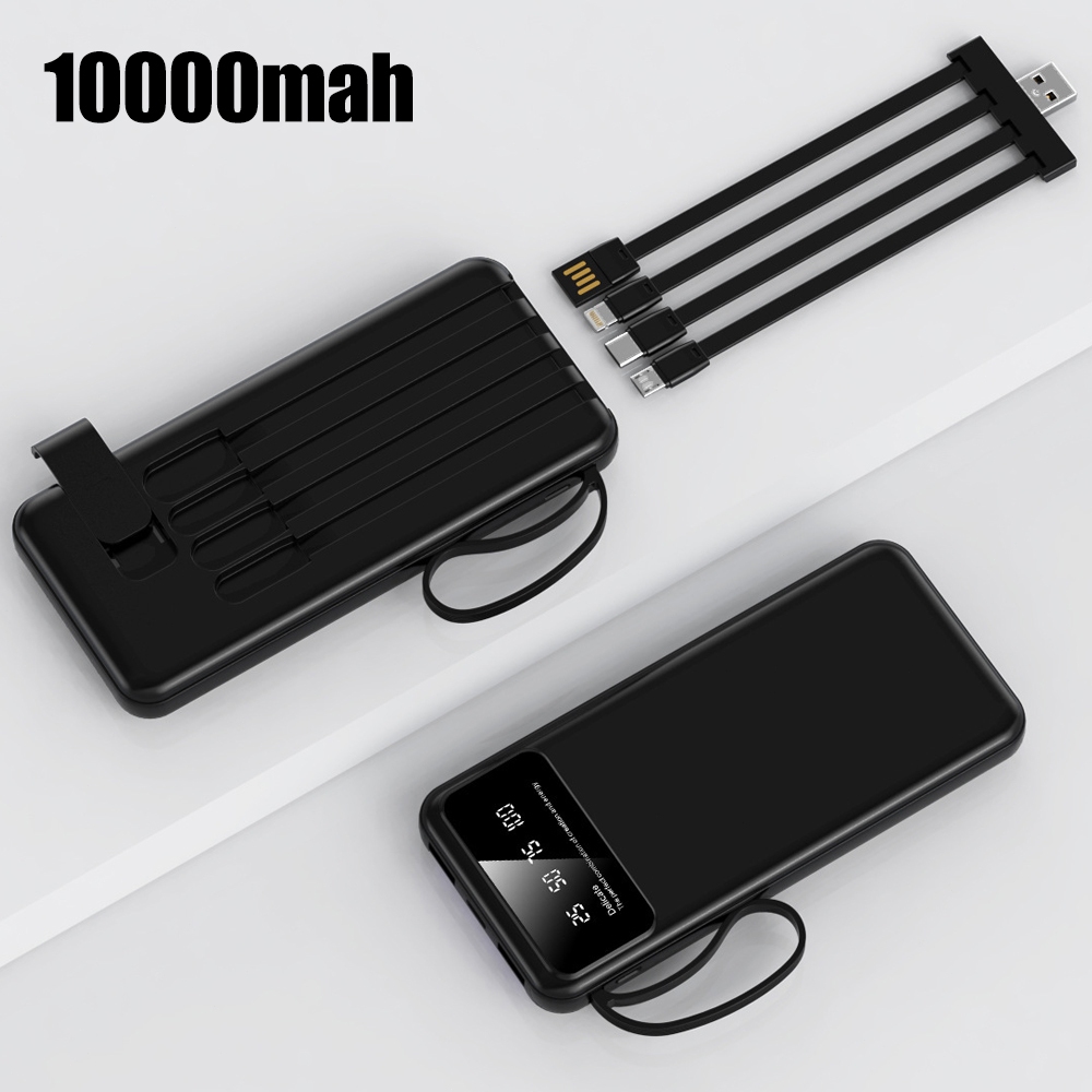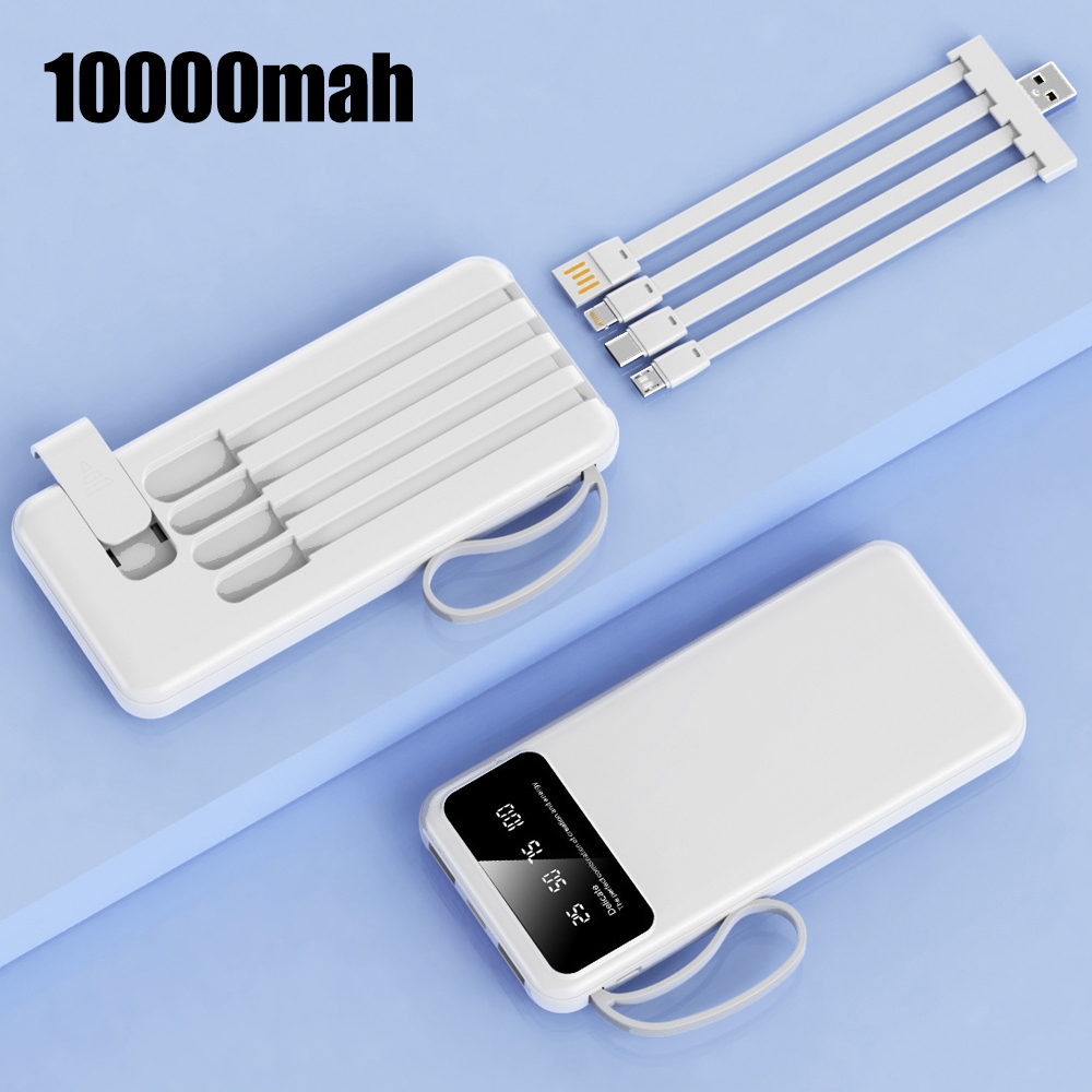 Power Bank Universal de 10.000mAh Carregador Portátil para Android e iOS Com Led celular Saida 4 Cabos